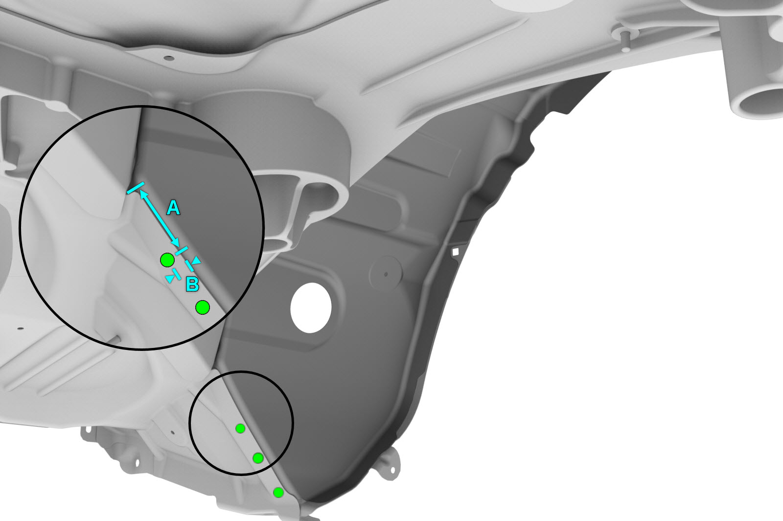 Torque the bolts to 22 Nm.NoteMake sure to cut the NVH foam under the subwoofer to allow for rivet clearance.