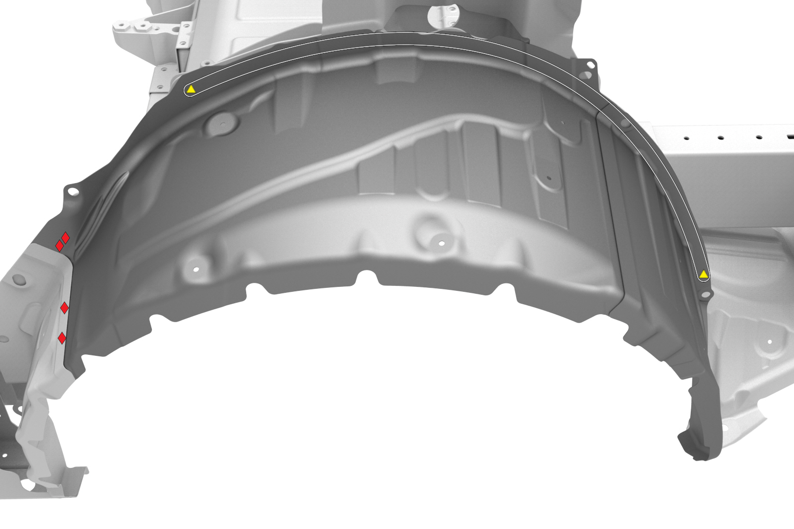 - Replaced in a single repair as a single complete component, using the ASSEMBLY,WHEEL HOUSE OUTER,SVC E-COATED (Wheelhouse Outer) service part and the instructions in the Repair Procedure section of this document.