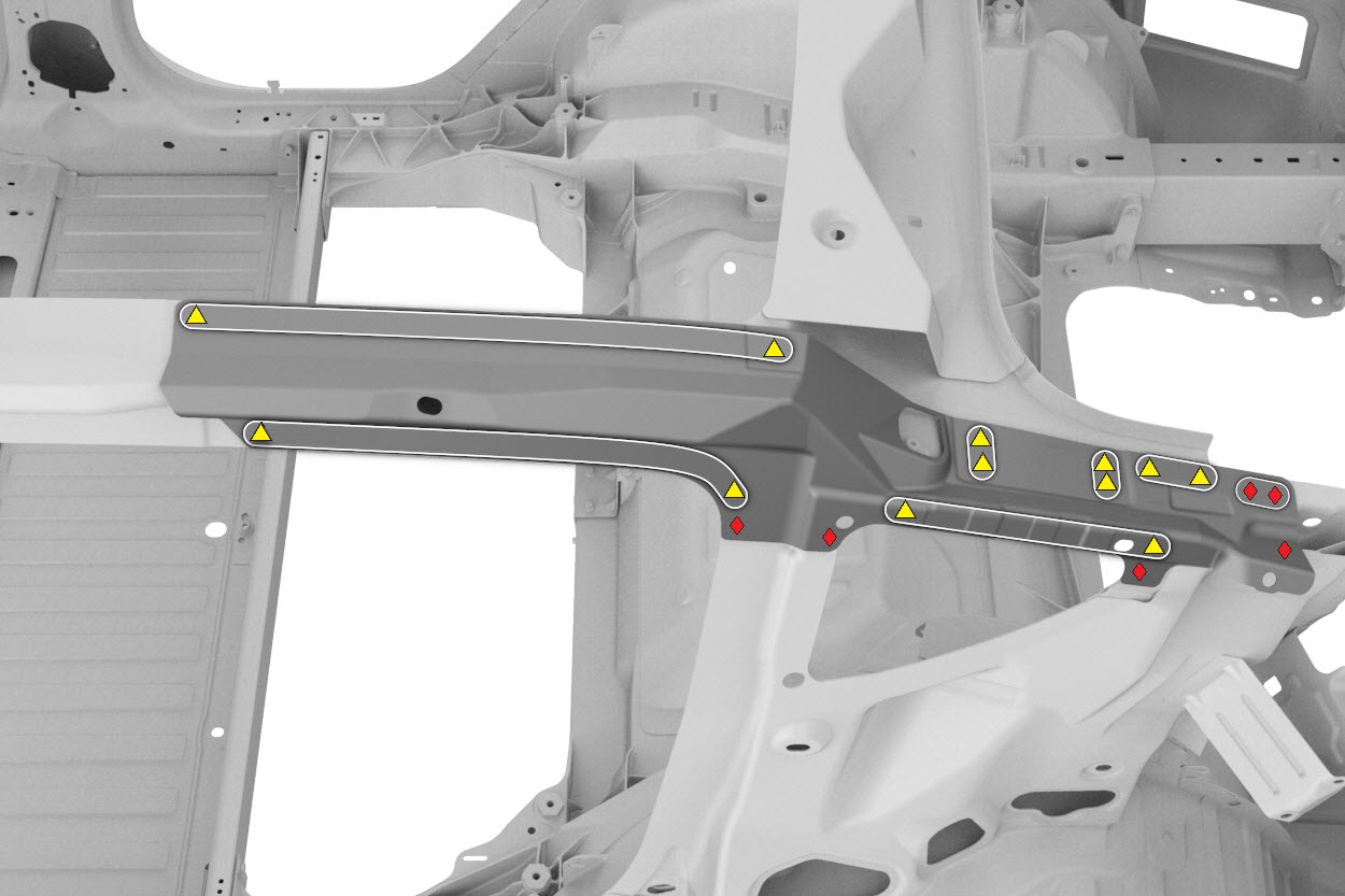 - Apply structural adhesive to the mating surfaces on the vehicle and the new component or components.