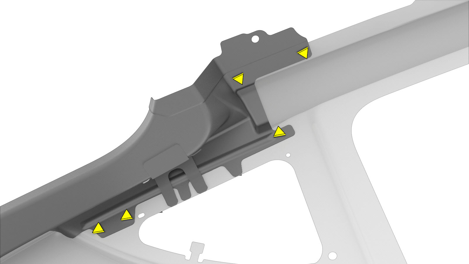 - Remove the Upper Trough from the Rear Quarter Outer Assembly service part.