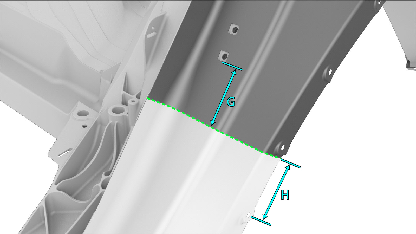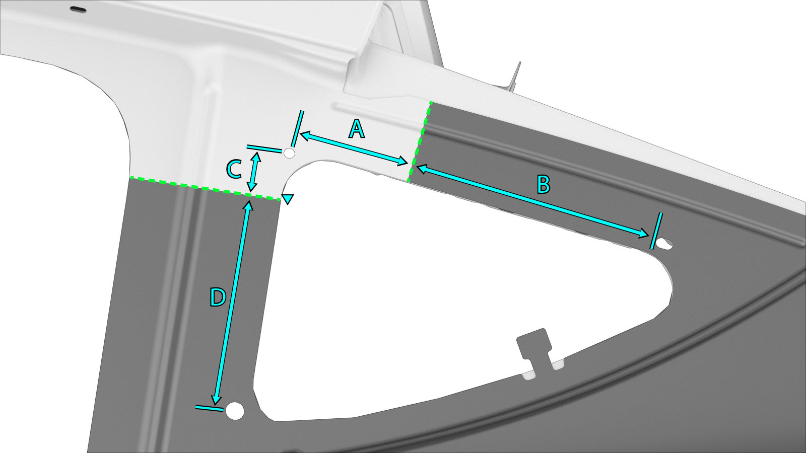 repair being performed.NoteSections of the Quarter Outer Assembly can be replaced individually or in any combination of sections so long as the referenced cut locations identified in this document are used.NoteMeasurements from bolt hole locations are from the center of the referenced holes unless stated differently in the section description.