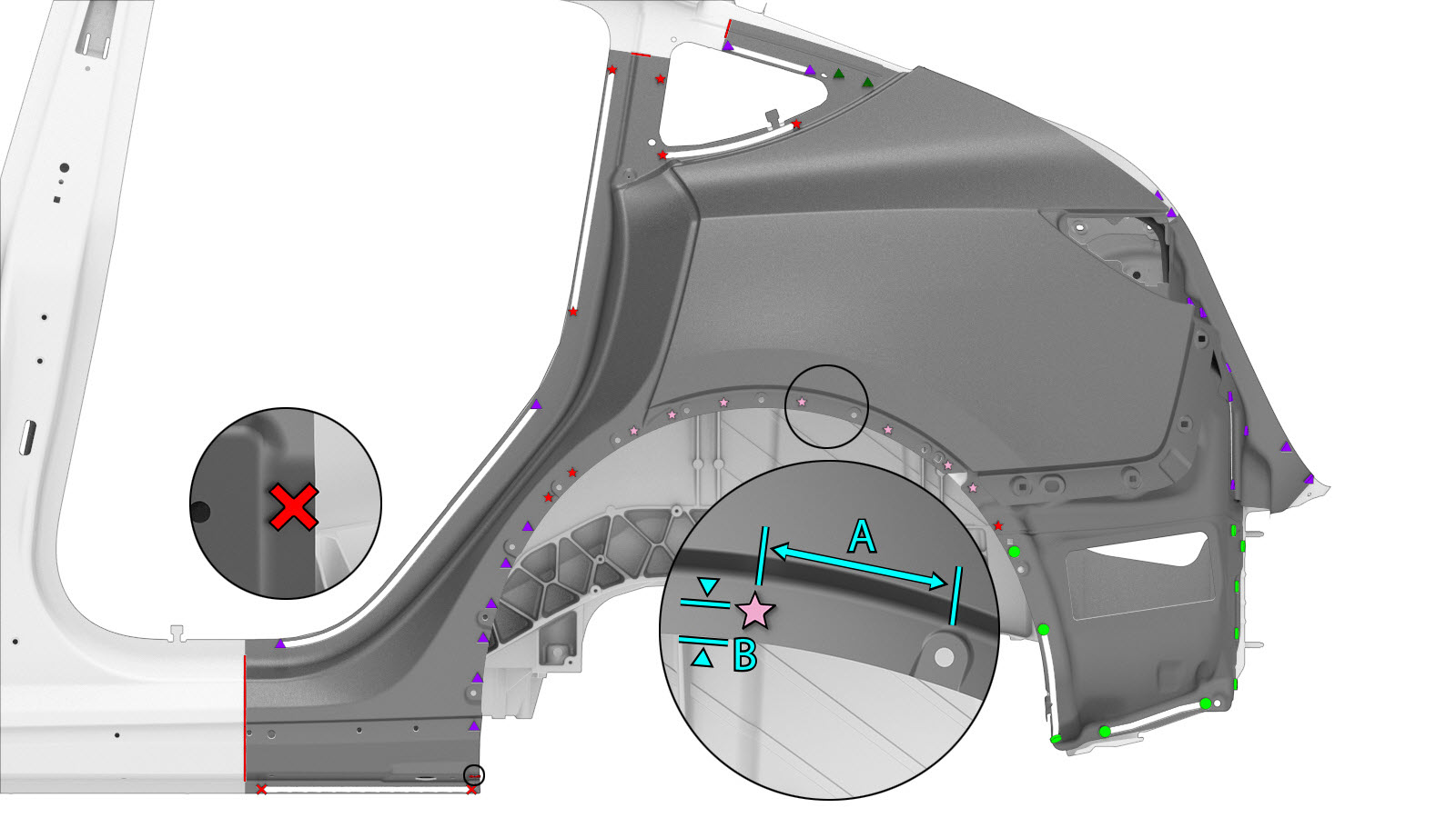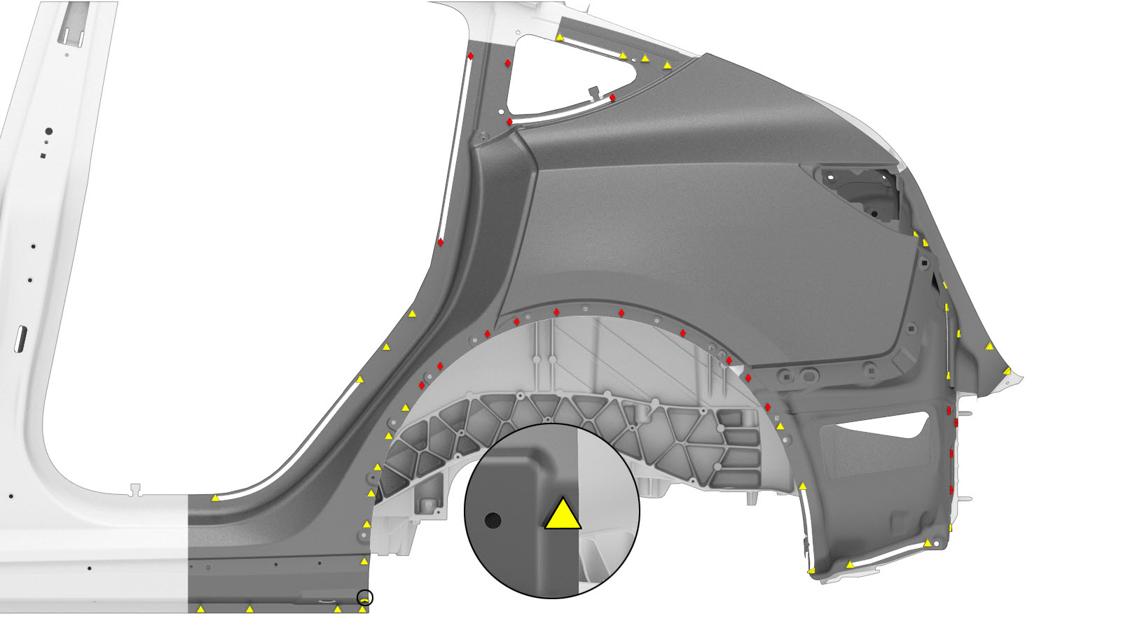 | The Quarter Outer Assembly is a single assembly, and can be replaced as a single repair, or instead of replacing the complete Quarter Outer Assembly, areas of the Quarter Outer can be replaced using portions of the complete Quarter Outer Assembly using the cut lines described in this document. | ||