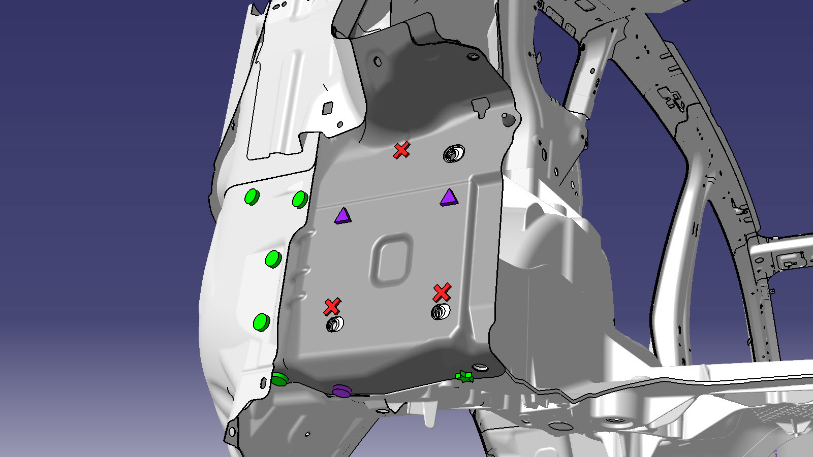 NoteA red X indicates a location where a factory-installed fastener is not being replaced.