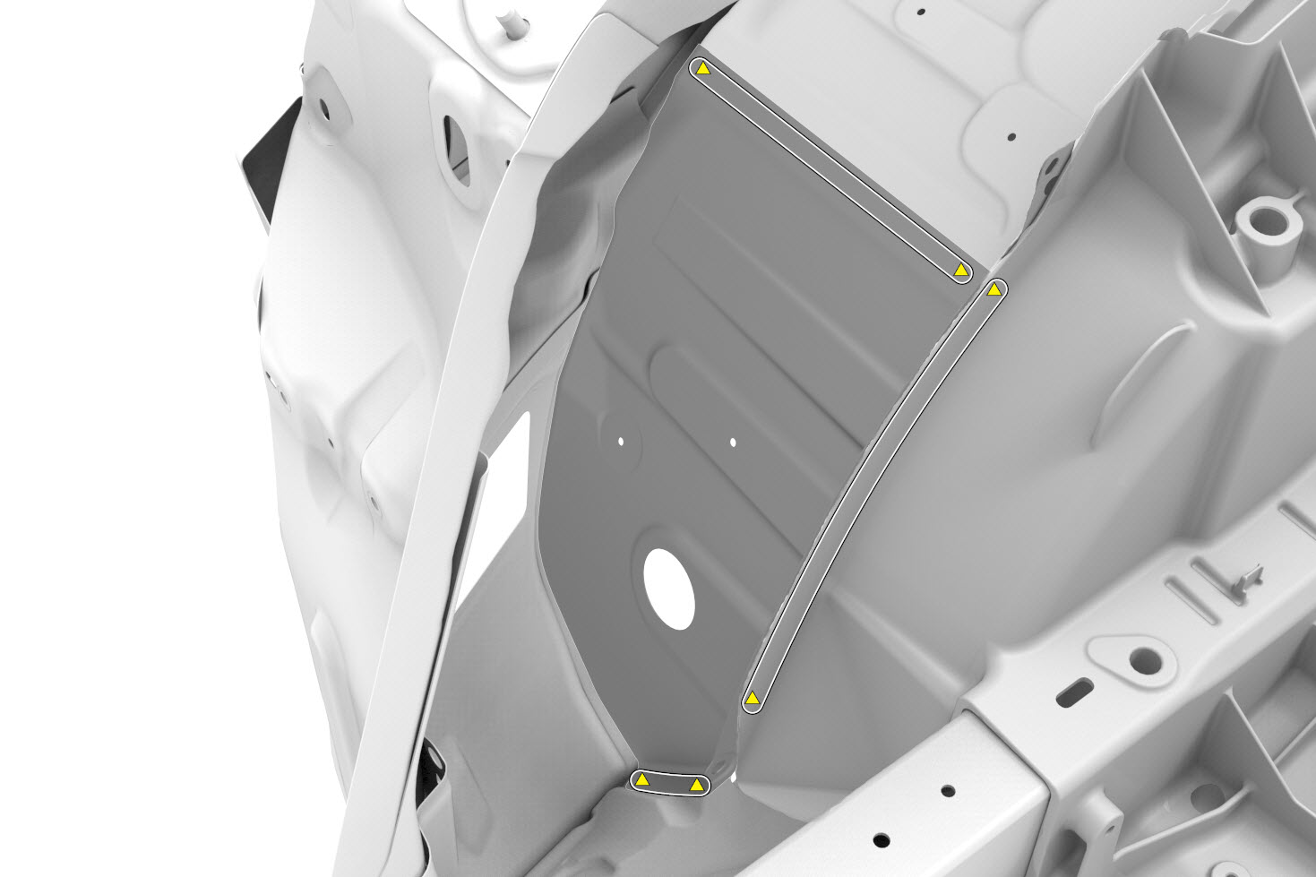 - Remove the Wheelhouse Rear Extension component from the MY Asy,WheelHouse Outer,SVC E-COATED service part.