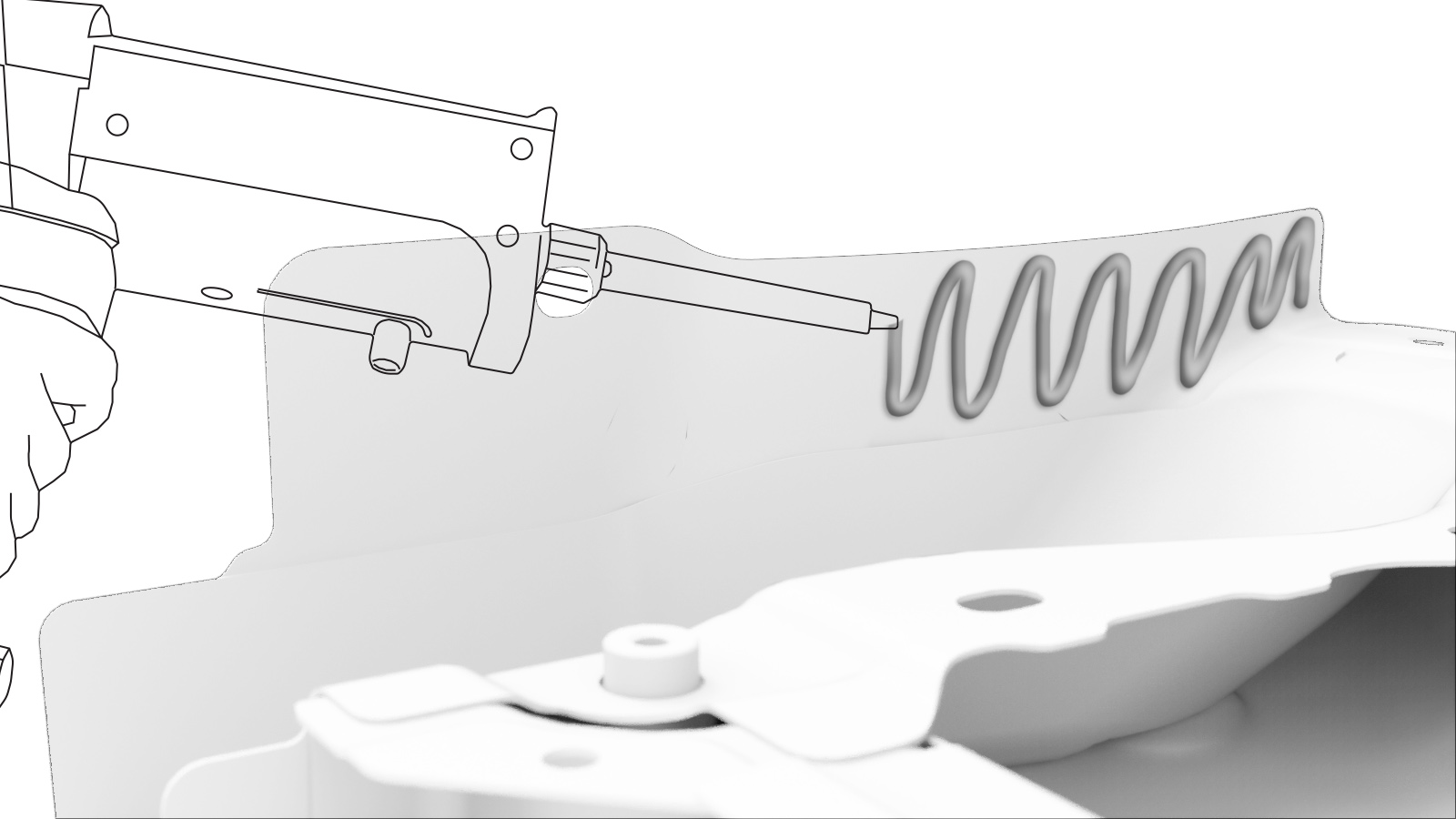 - Apply a bead of urethane sealant to the contacting edges of the foam dam.