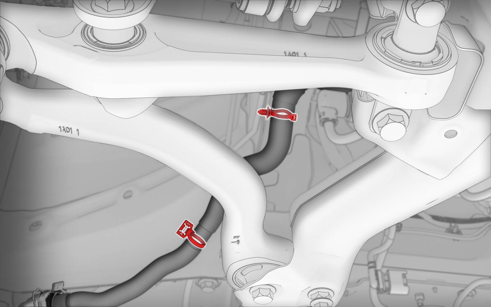 - Release powertrain supply hose from body.