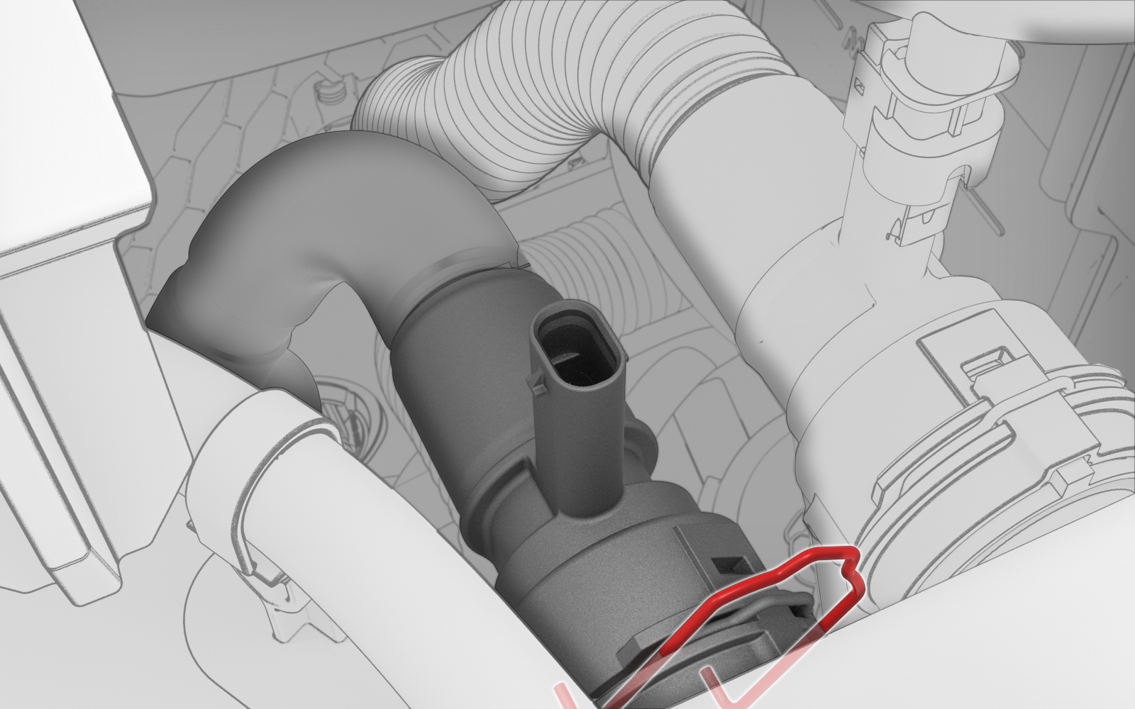 - Connect the sensor for the powertrain supply hose.
