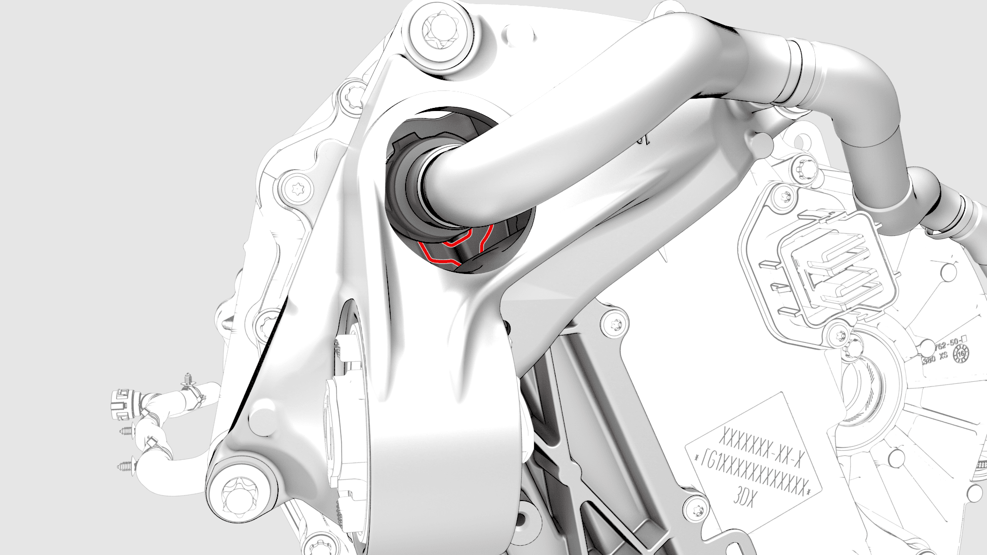 - Release the clip that attaches the coolant outlet hose to the LH mount.