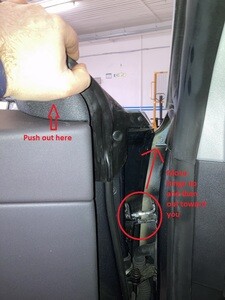 - Open the LH front door and lower the LH front window.