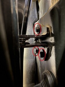 - Use IPA wipes to clean the LH upper front door hinge bolt heads, and then allow 1 minute of dry time before continuing to the next step.