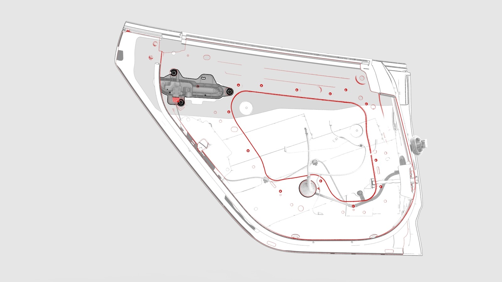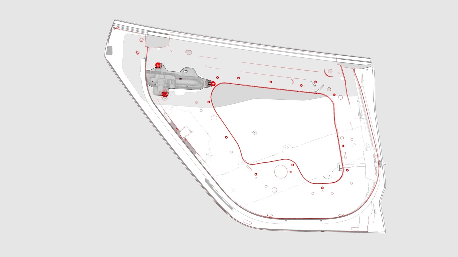 - Install the LH rear window motor/regulator assembly. See Window Motor / Regulator Assembly - Rear - LH (Remove and Replace).