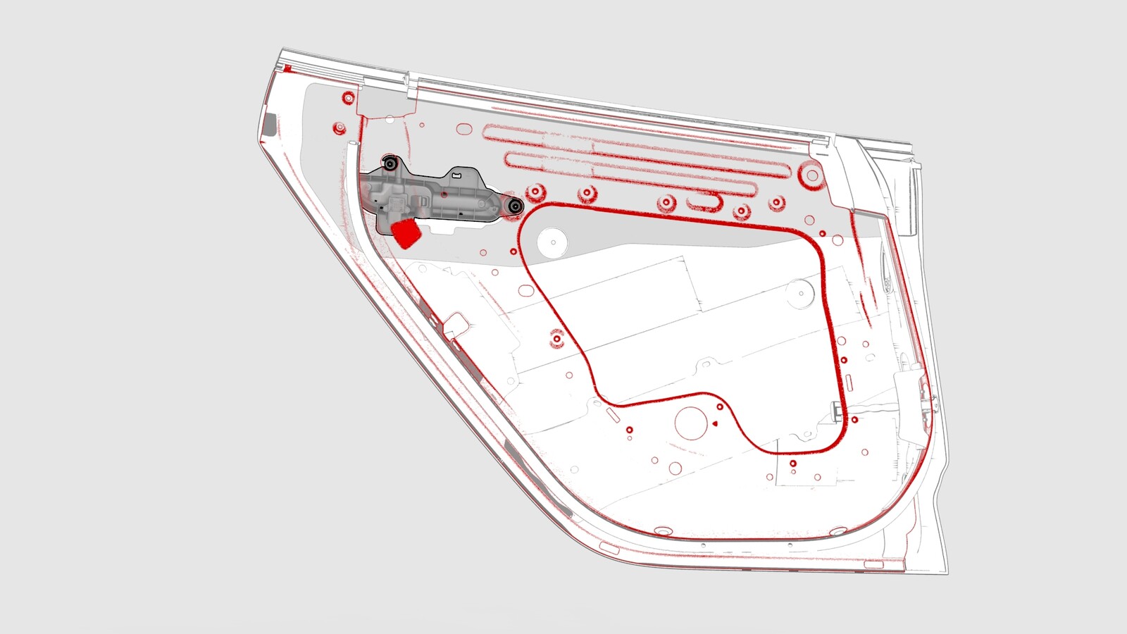 - Remove the LH rear window motor/regulator assembly. See Window Motor / Regulator Assembly - Rear - LH (Remove and Replace).