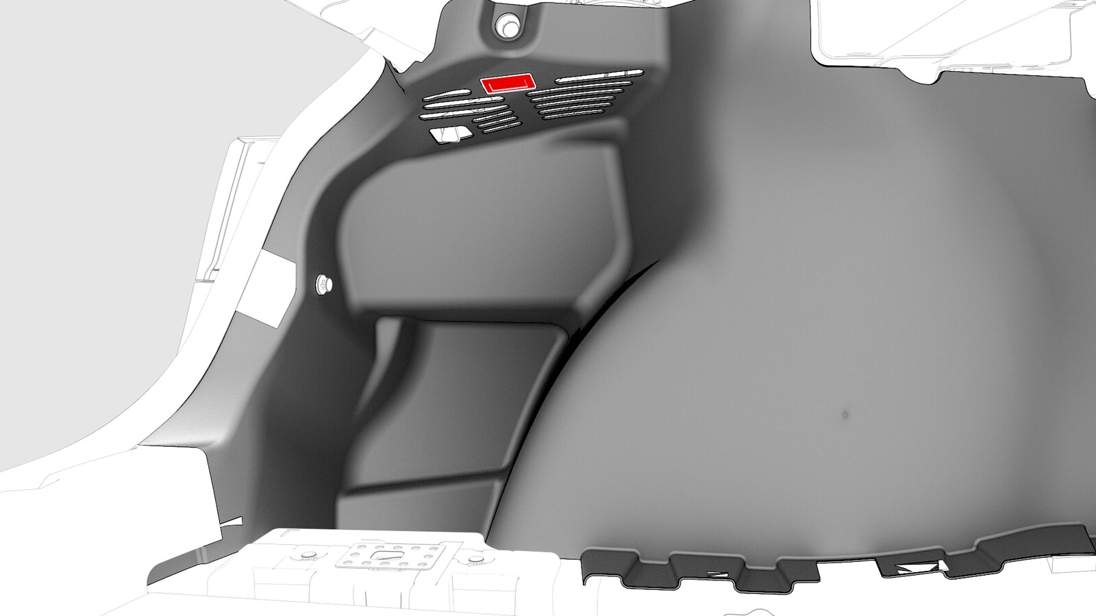 - Release the edge of the trunk carpet and move the LH trunk side trim aside. Tuck the carpet under the trim and take care not to cause excessive creasing.