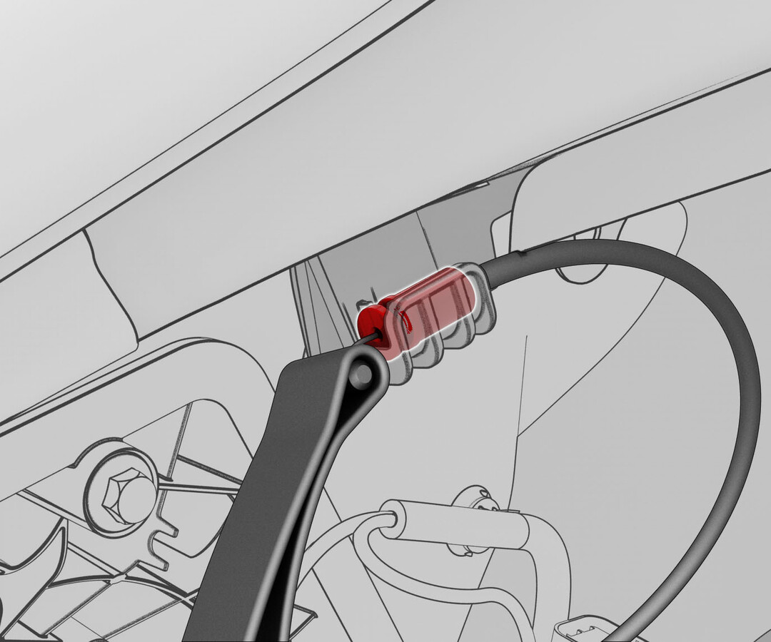 - Attach the charge port manual release cable barrel onto the vehicle body clip.