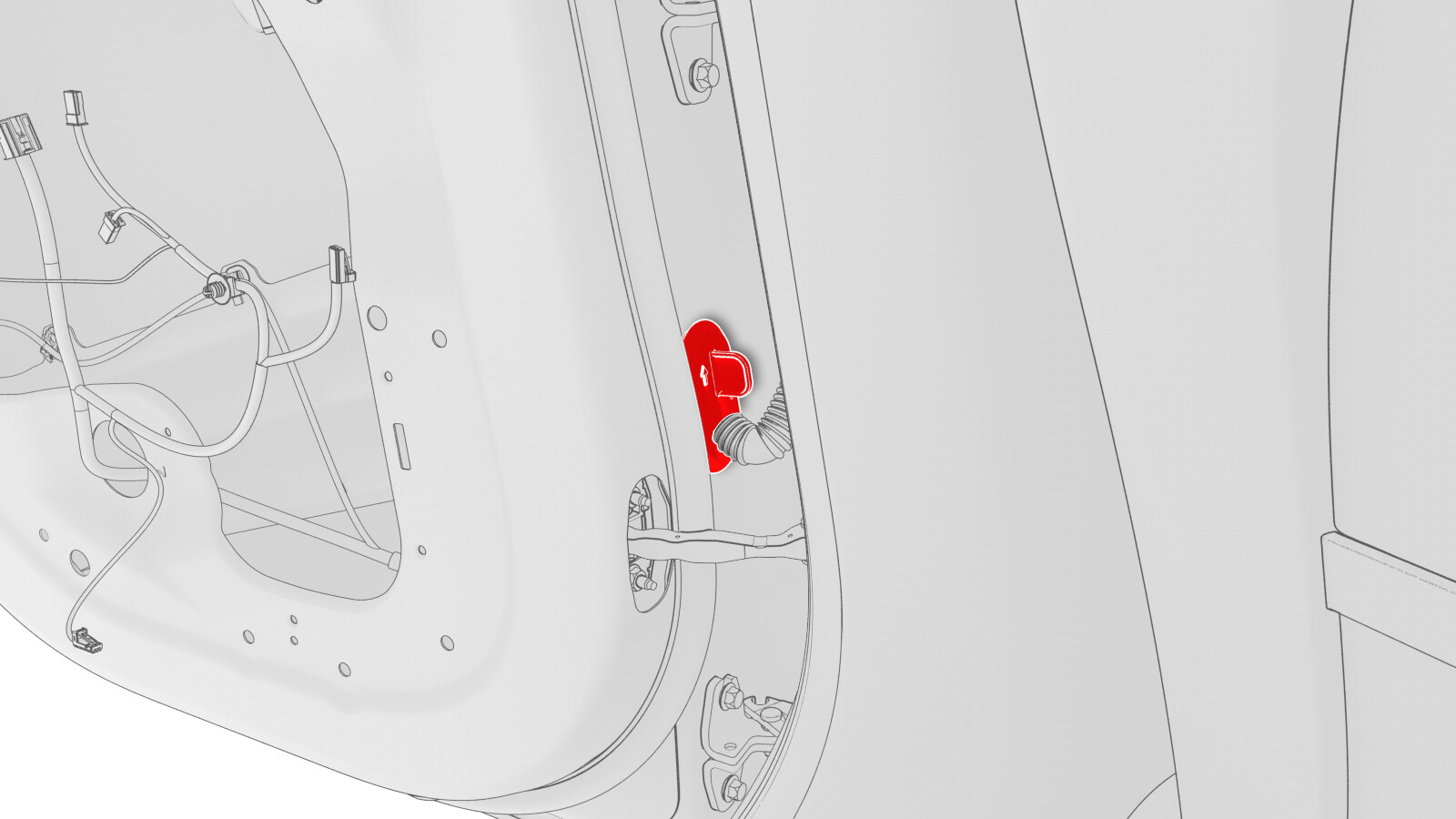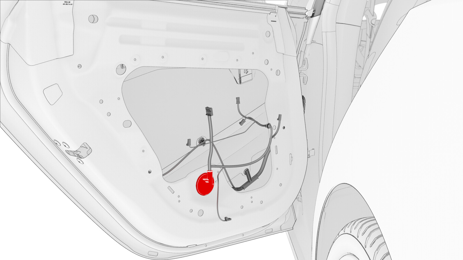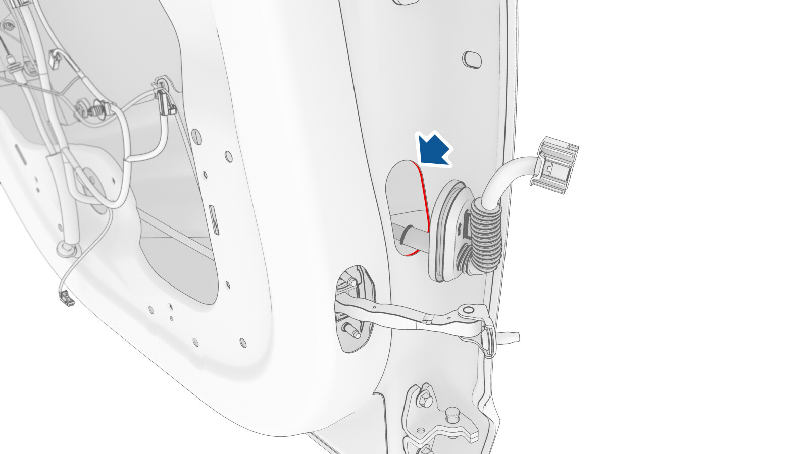 - Push the LH rear door harness through the front inner door harness port, and then remove the harness from the vehicle.