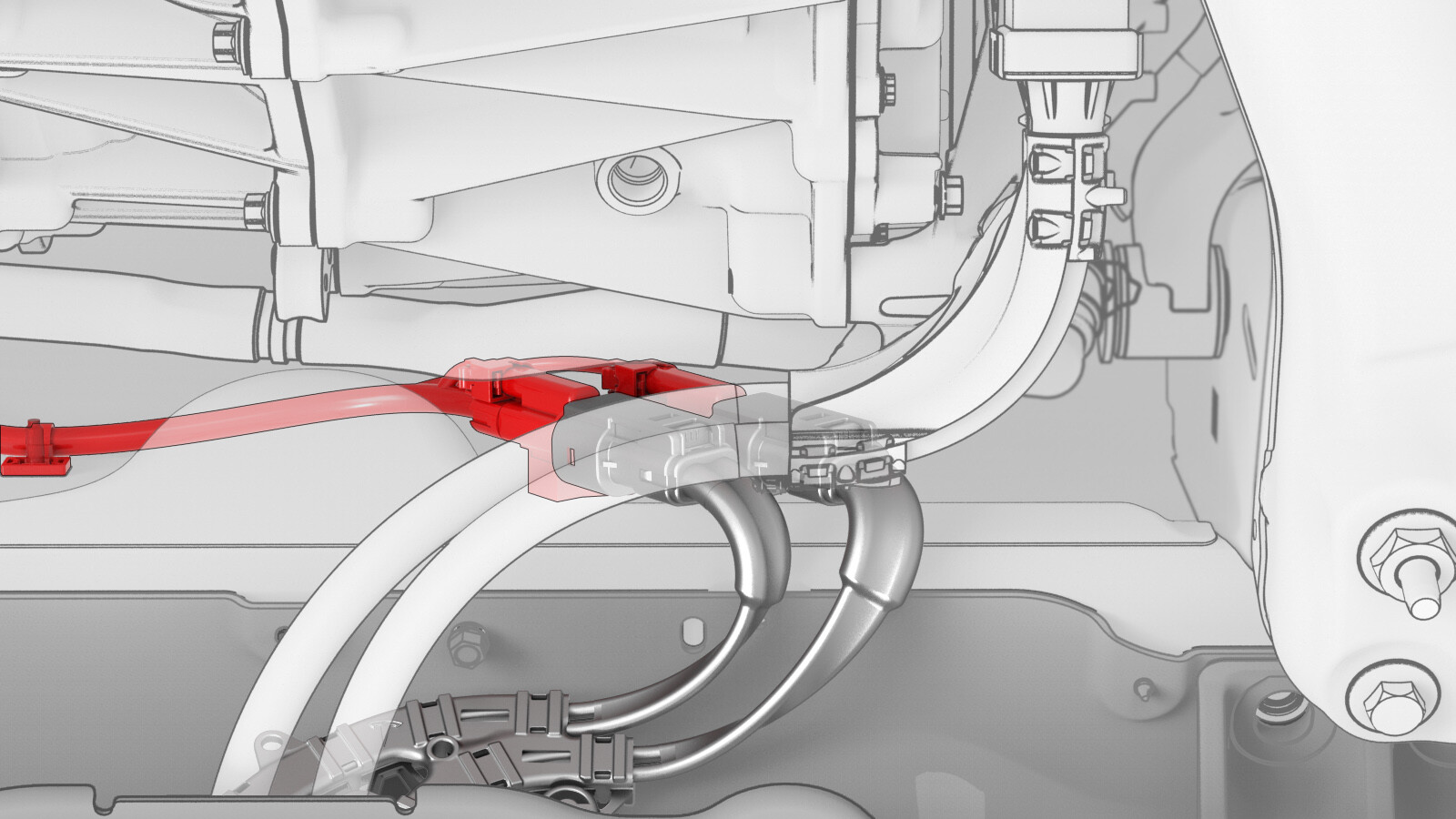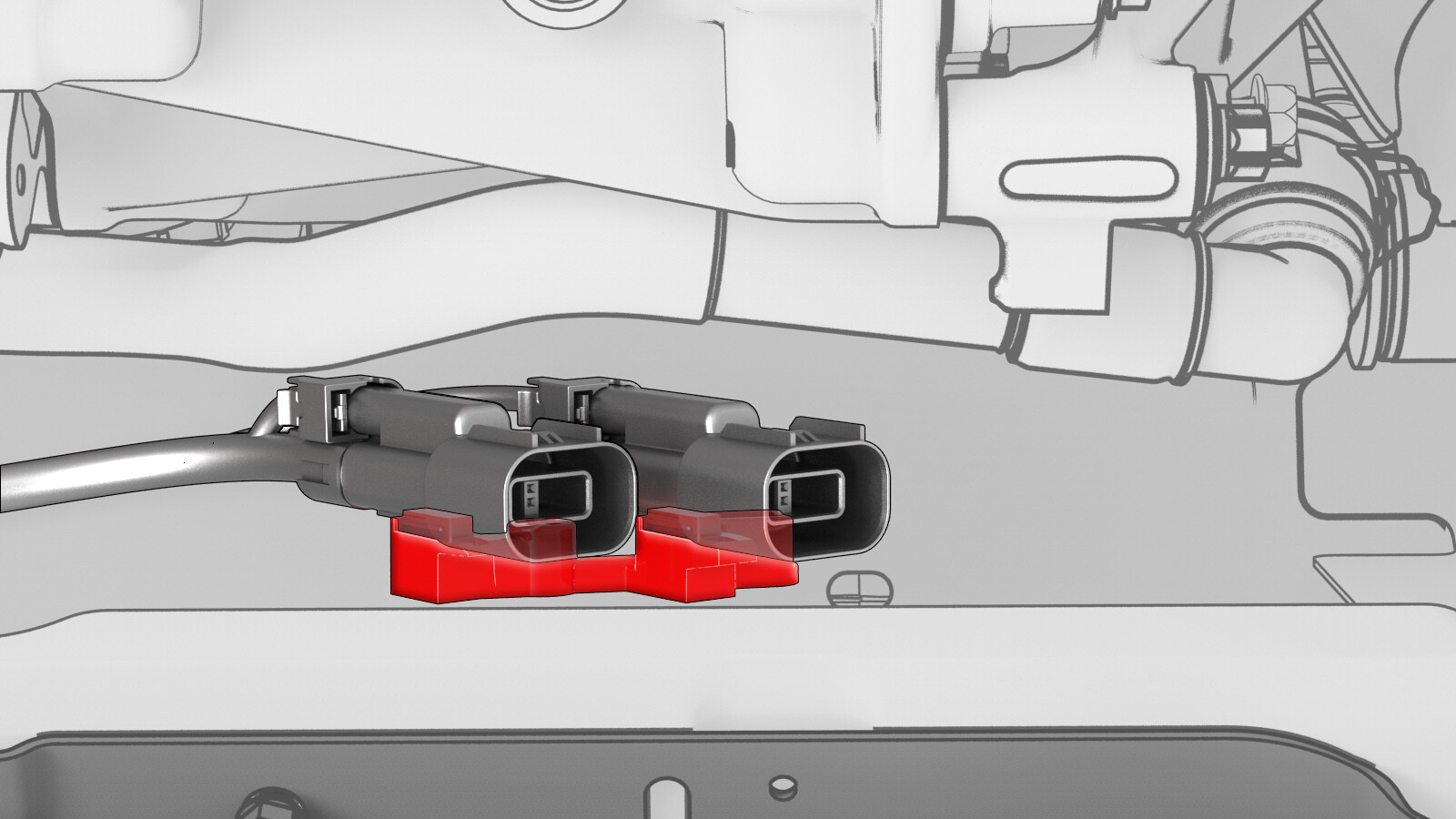 - Push the red locking tab toward the connector body to fully lock the connectors (x2).