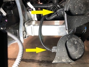 - Connect the electrical harness to the horn connectors (x2).