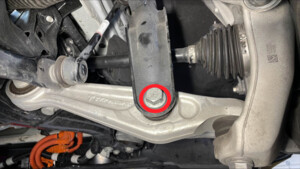 - Install and hand-tighten new larger bolts (x2) that attach the rear of the front subframe to the body.