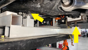 - Move the vehicle to a 2 post lift. See Raise Vehicle - 2 Post Lift.