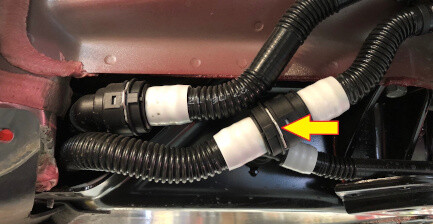 - Heat Pump Model 3 - Connect the electrical harness to the LV logic connectors (x2) below the steering gear, and then push the red tabs to lock the connectors.