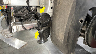 - Disconnect the electrical harness from the horn connectors (x2).