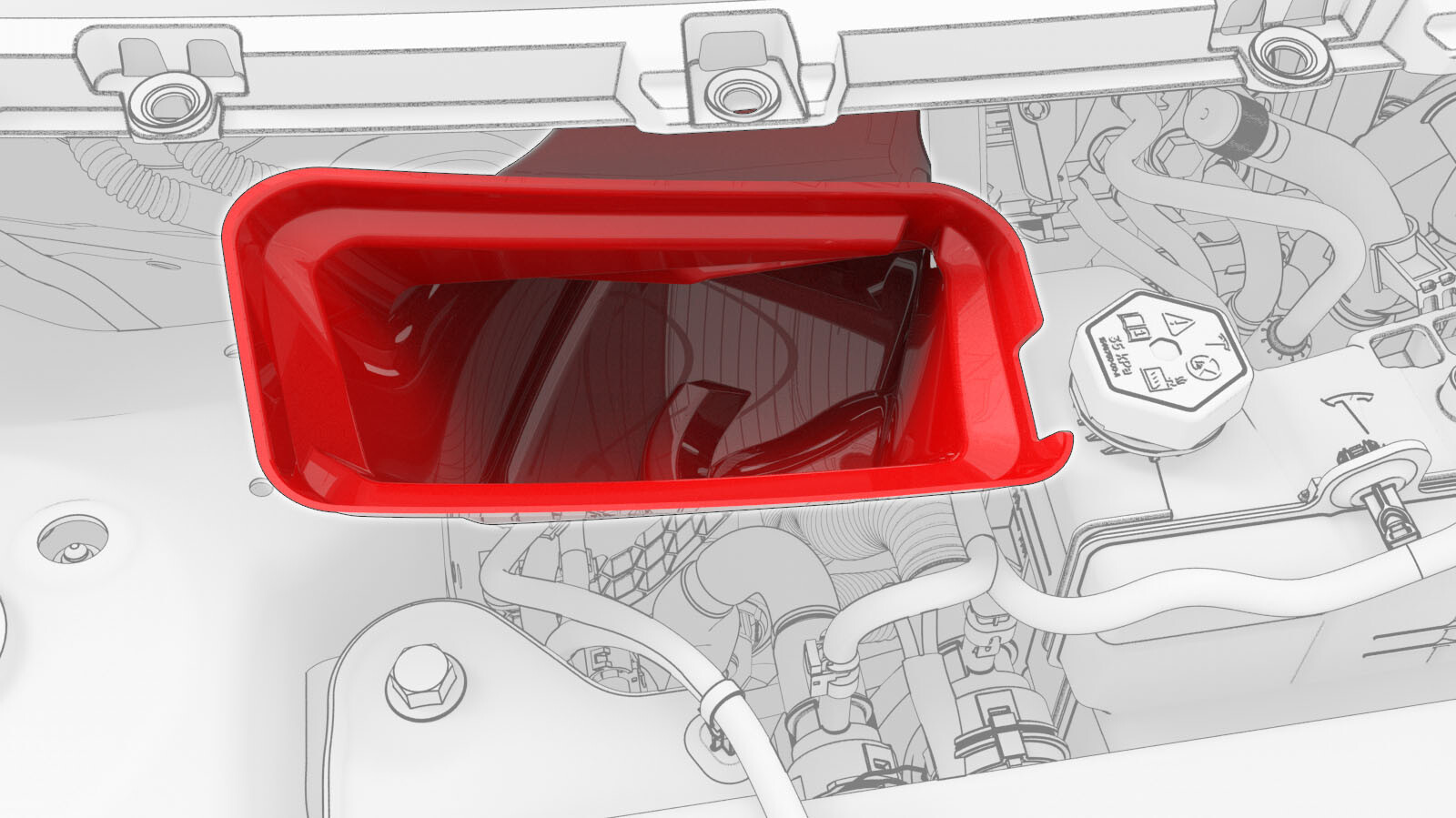 - Release the fresh intake duct from the studs (x2) on the bulkhead, and then remove the duct from the vehicle.