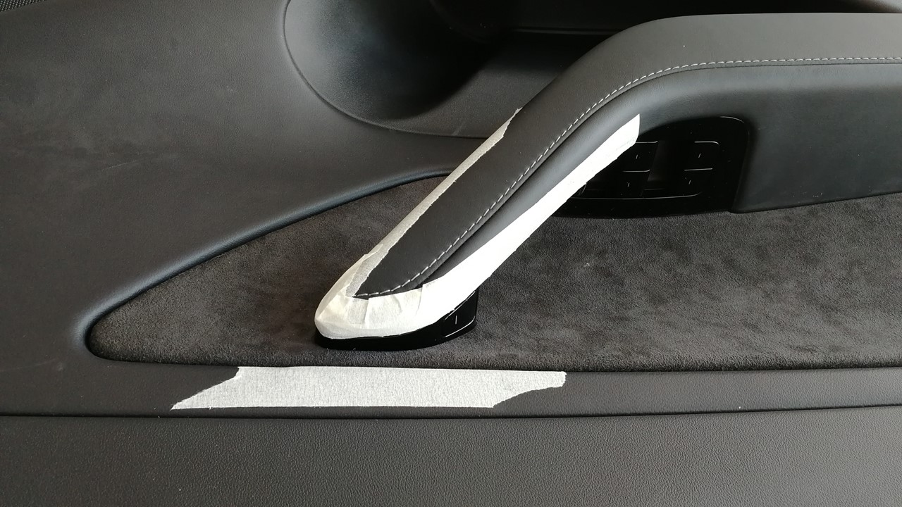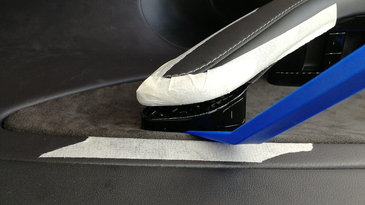 - Apply masking tape around the work area to protect the door trim panel.