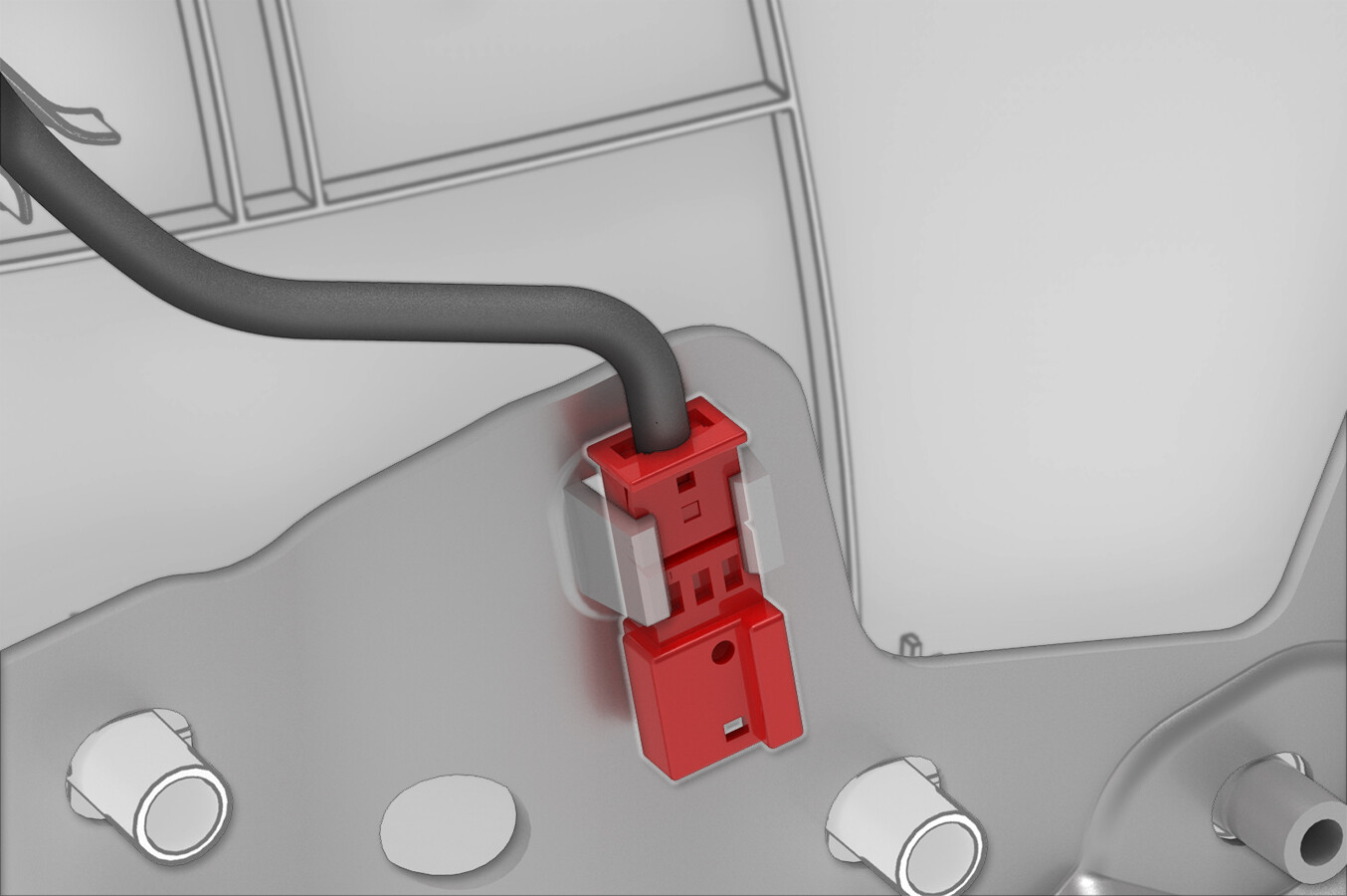 NoteMark the position of pins and the electrical connector.NoteSeparate the pins and plug to ensure that they can pass through the narrow trim panel space.