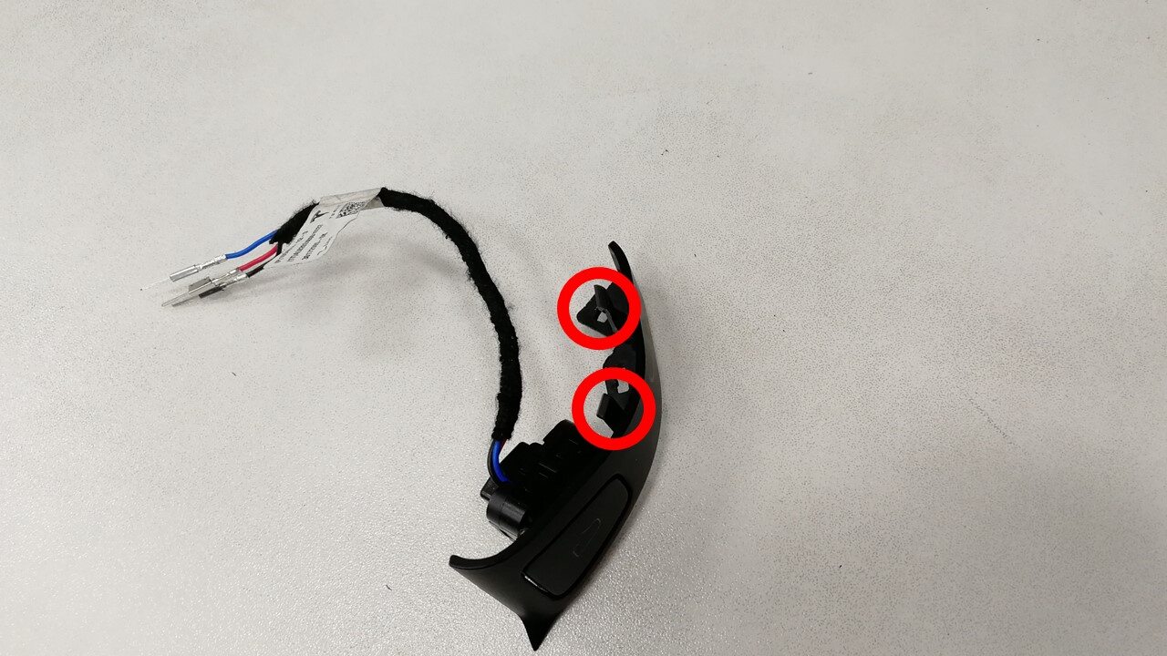 - Install the tabs (x2) that attach the interior door release switch to the door trim panel.