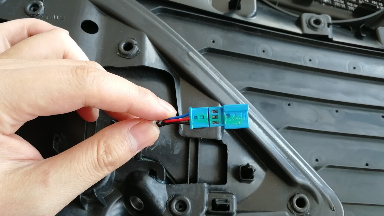 separate the pins (x3) from the interior door release switch electrical