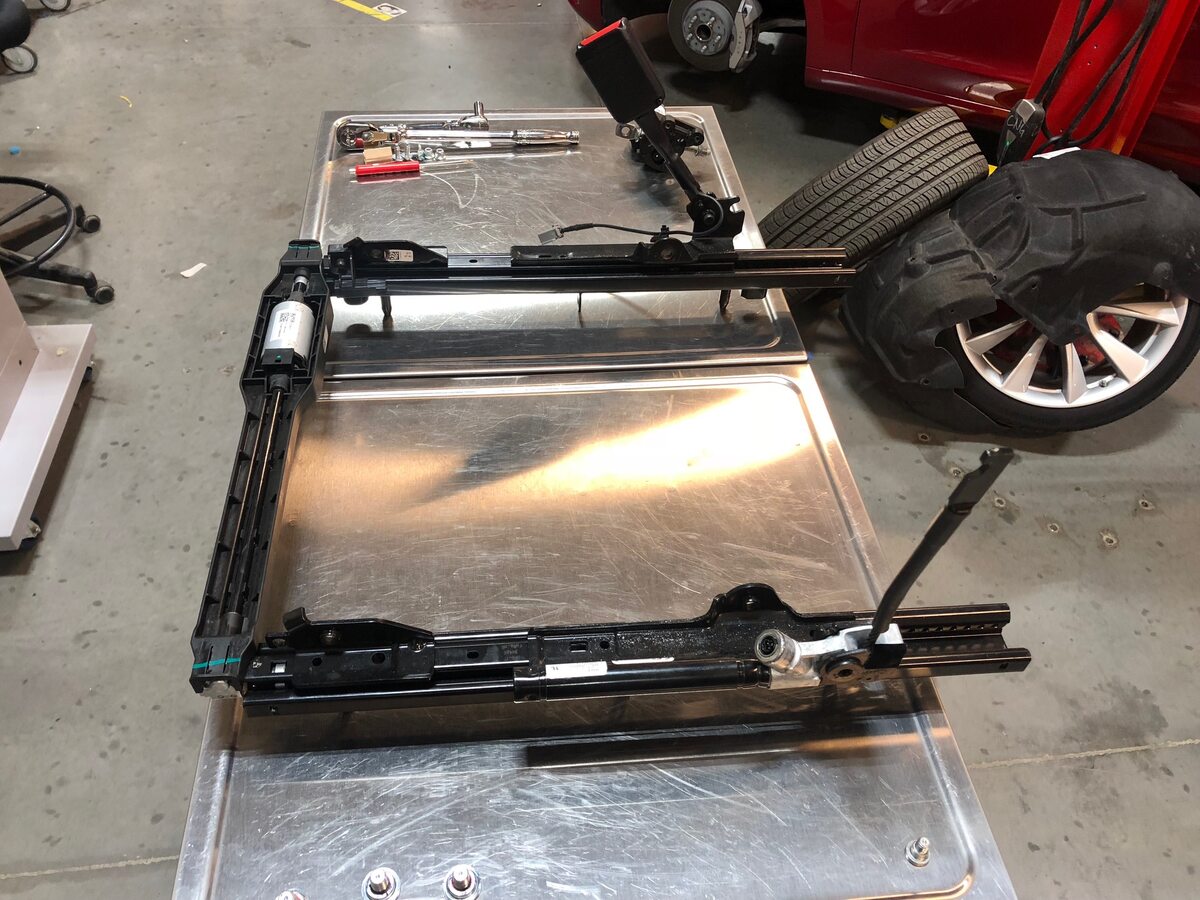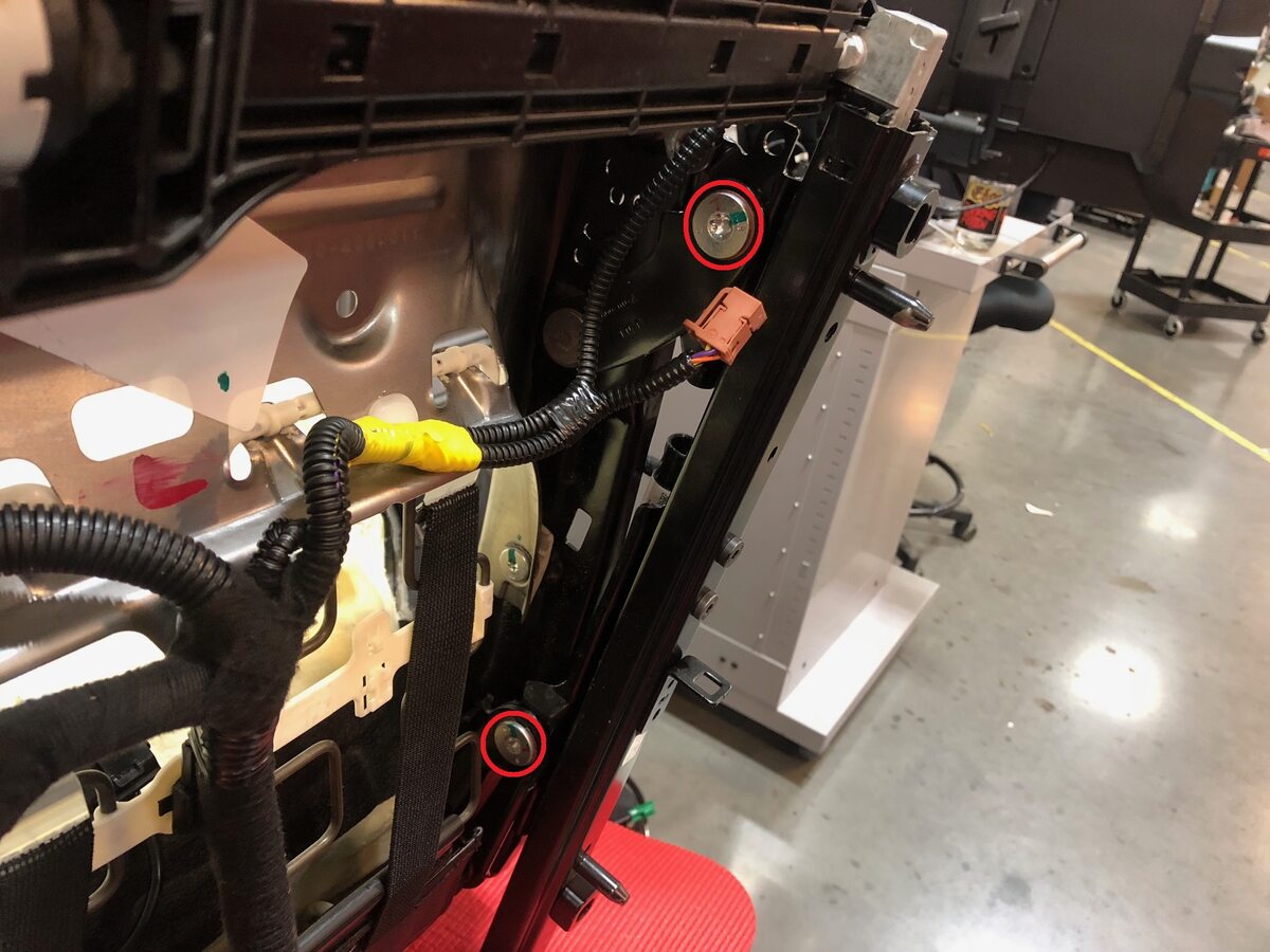 track, and then install a new bolt that attaches the pretensioner to the seat
