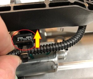 - Release the clip that attaches the track motor harness to the track motor housing.