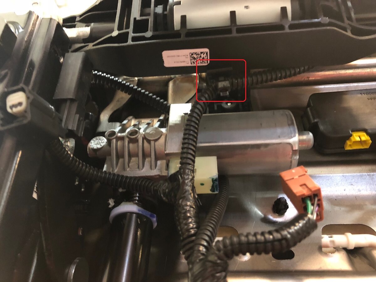 - Install the clip that attaches the seat track harness connector to the seat track motor.