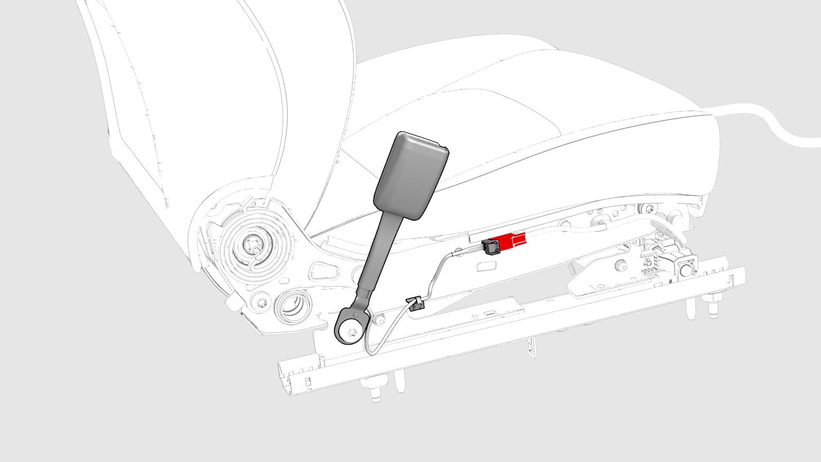- Disconnect the electrical connector from the 1st row buckle.