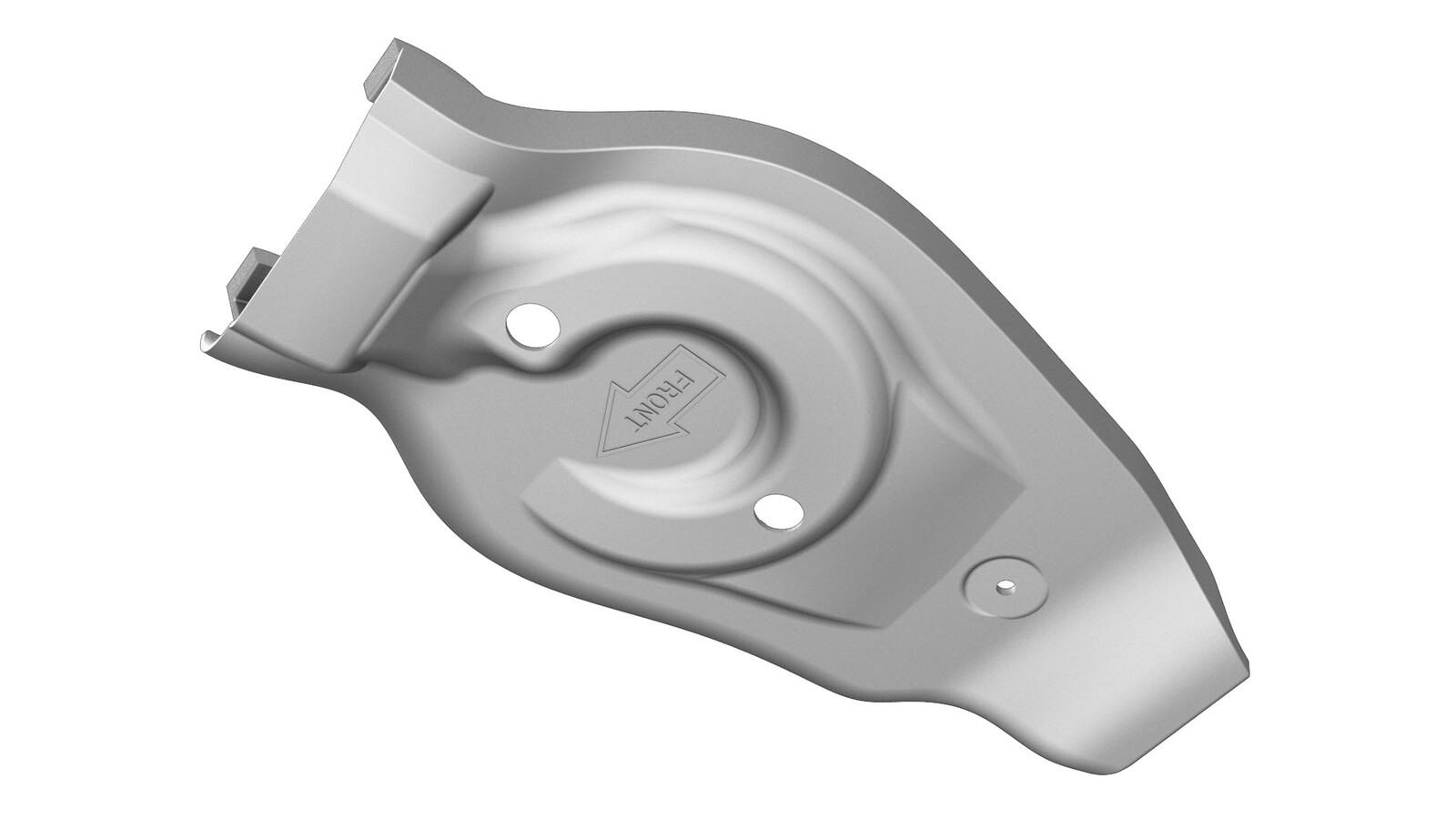 - Release the tabs (x2) that attach the rear suspension cover to the LH lower rear control arm assembly, and then remove the rear suspension cover from the vehicle.