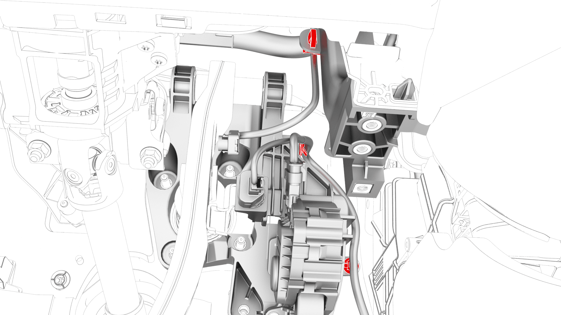 - Release the clips that attach the electrical harness to the brake pedal assembly.