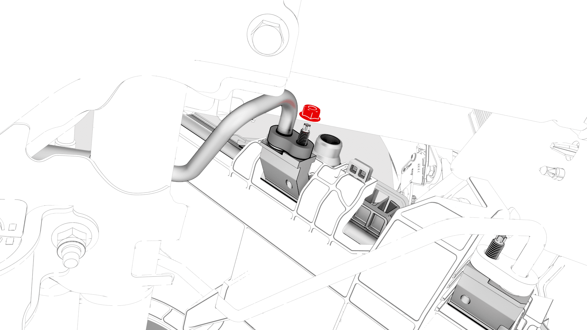 Install the nut that attaches the suction/liquid line to the cooling fan module.