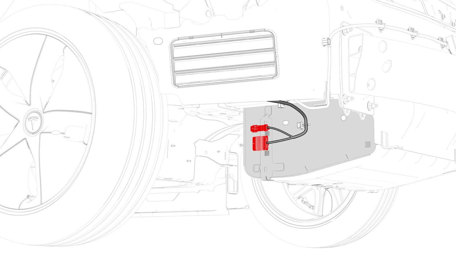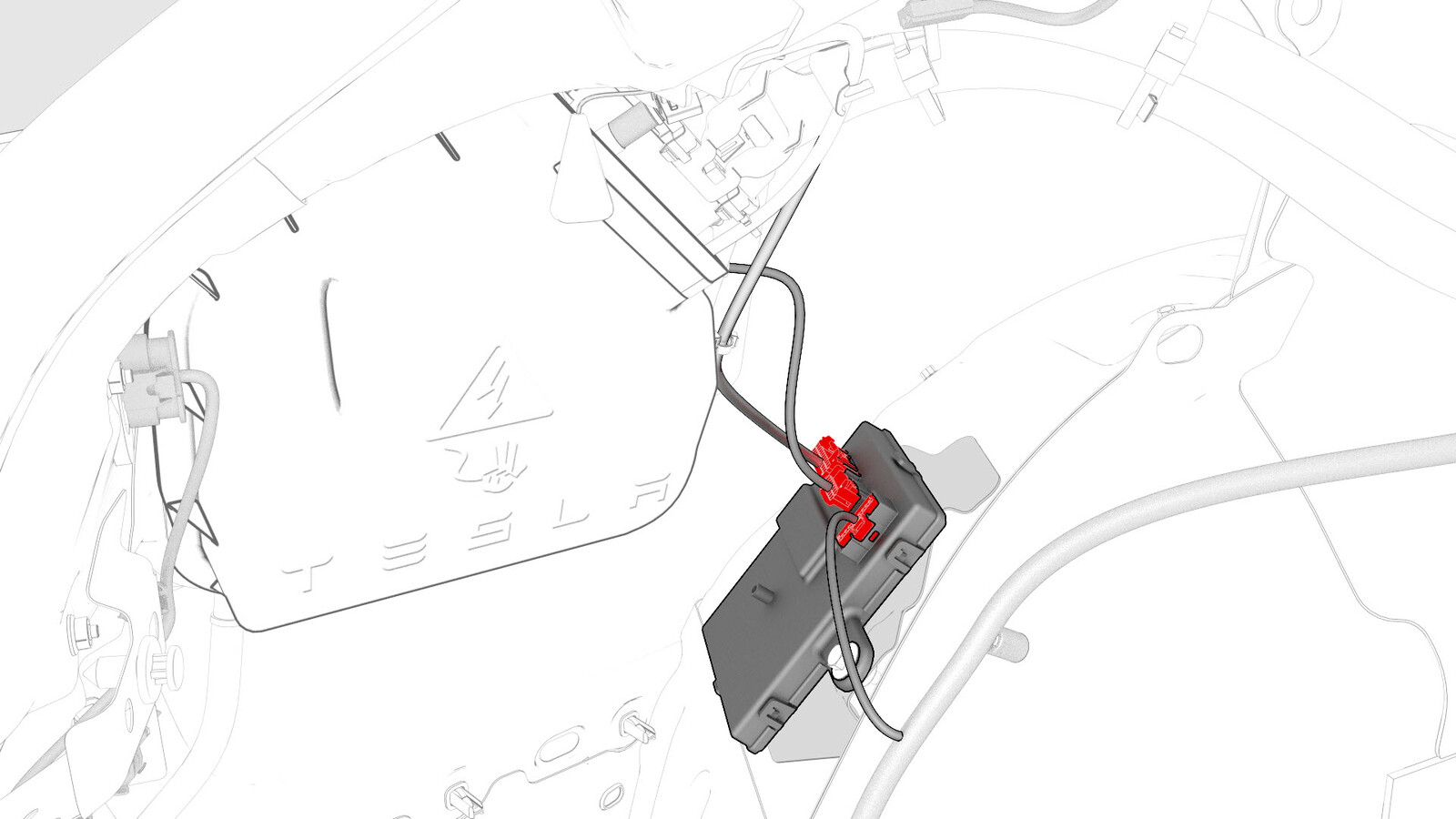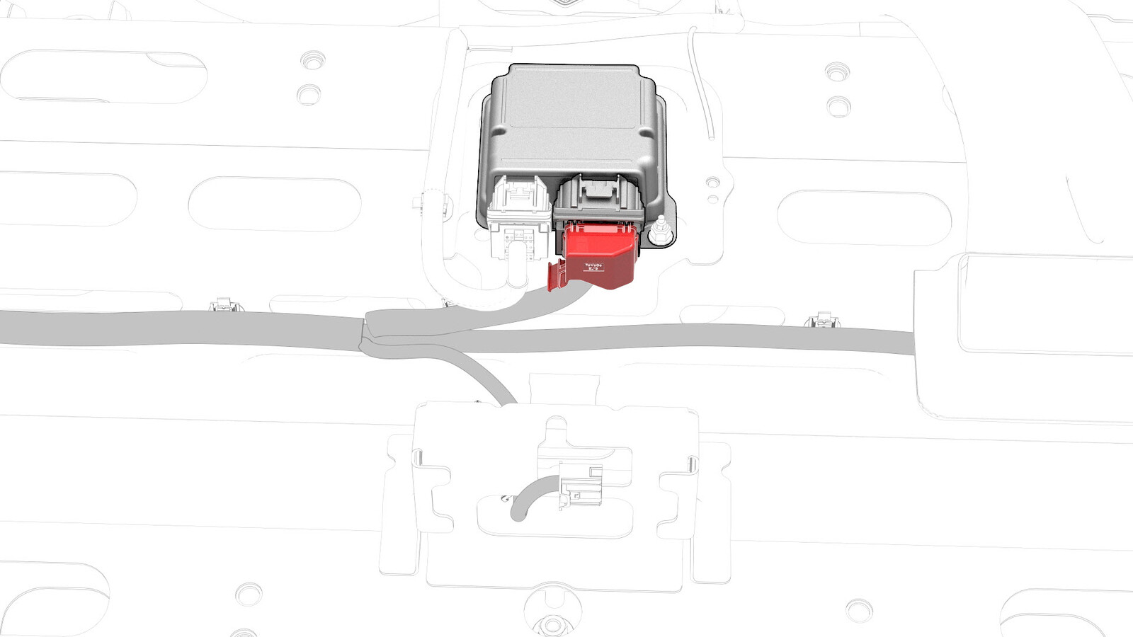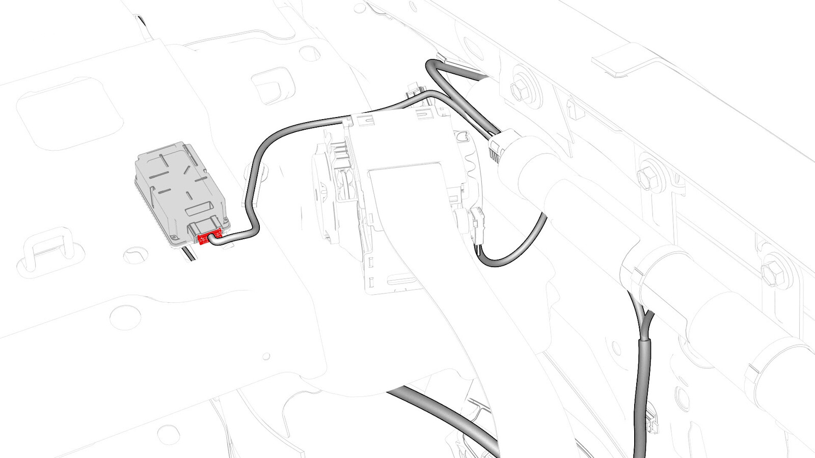 - Disconnect the electrical harness from the charge port ECU connectors.
