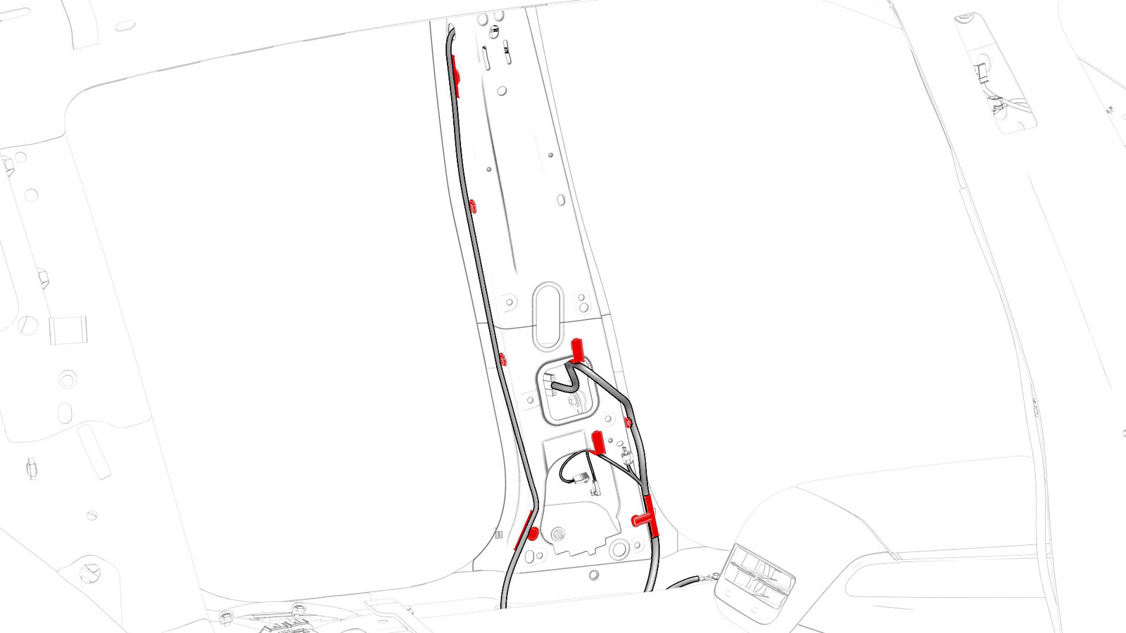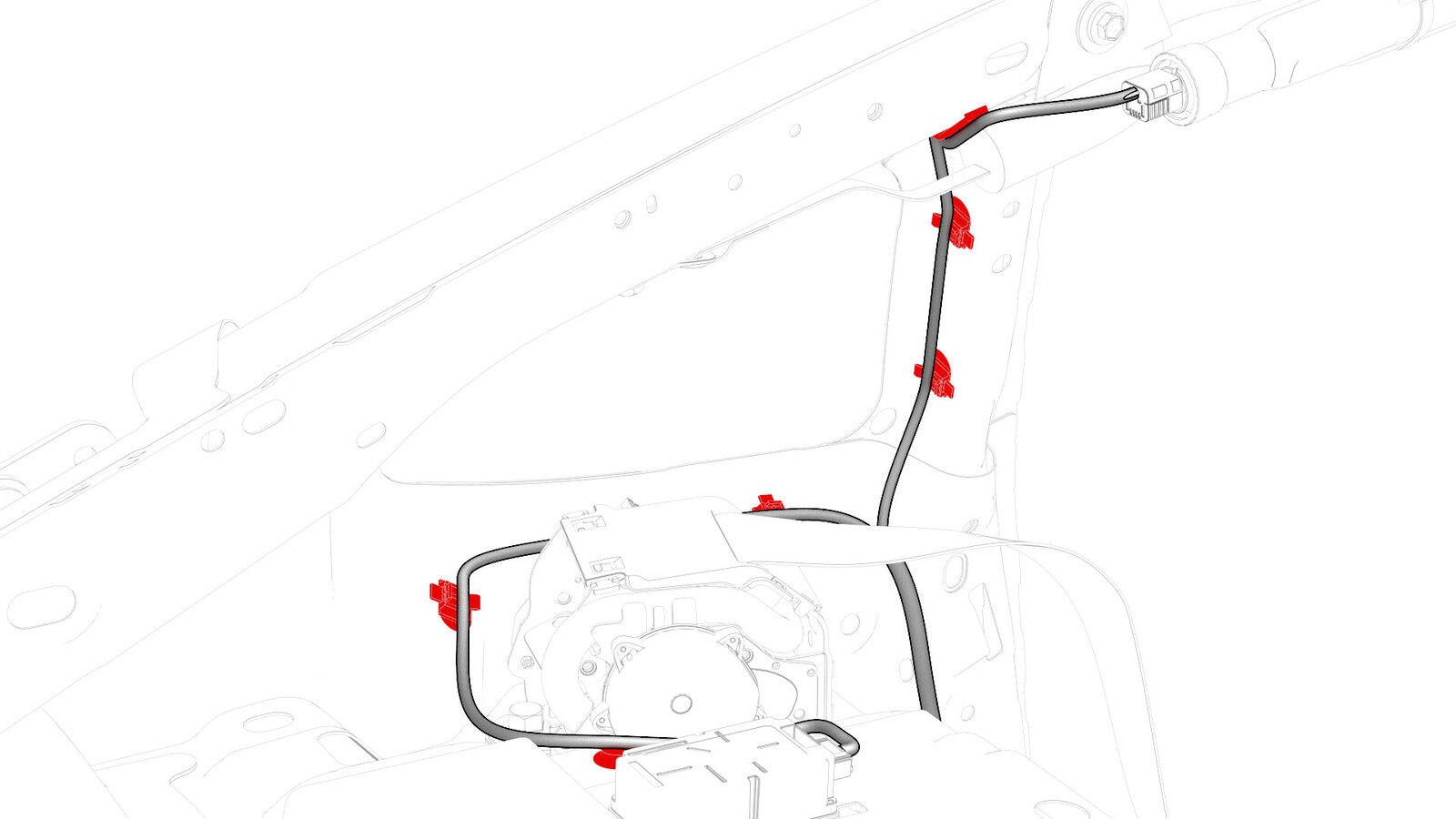 - Release the clips that attach the harness to the body in the lower C-pillar area.