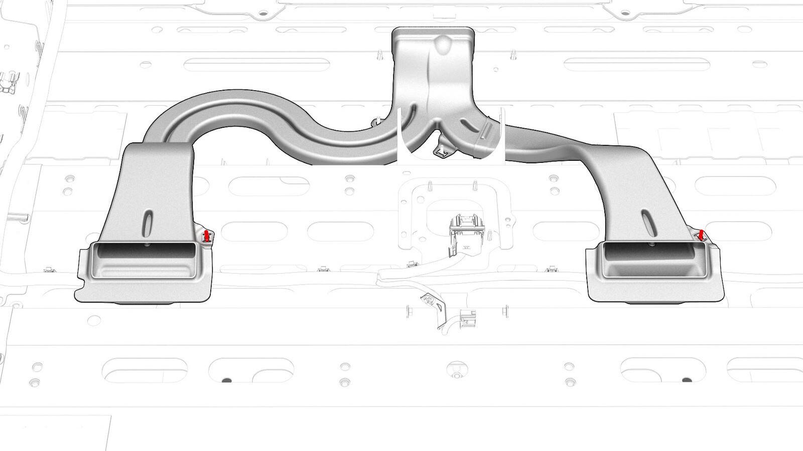 - Lift up the rear portion of the floor duct to release the clips that attach the electrical harness to the body.