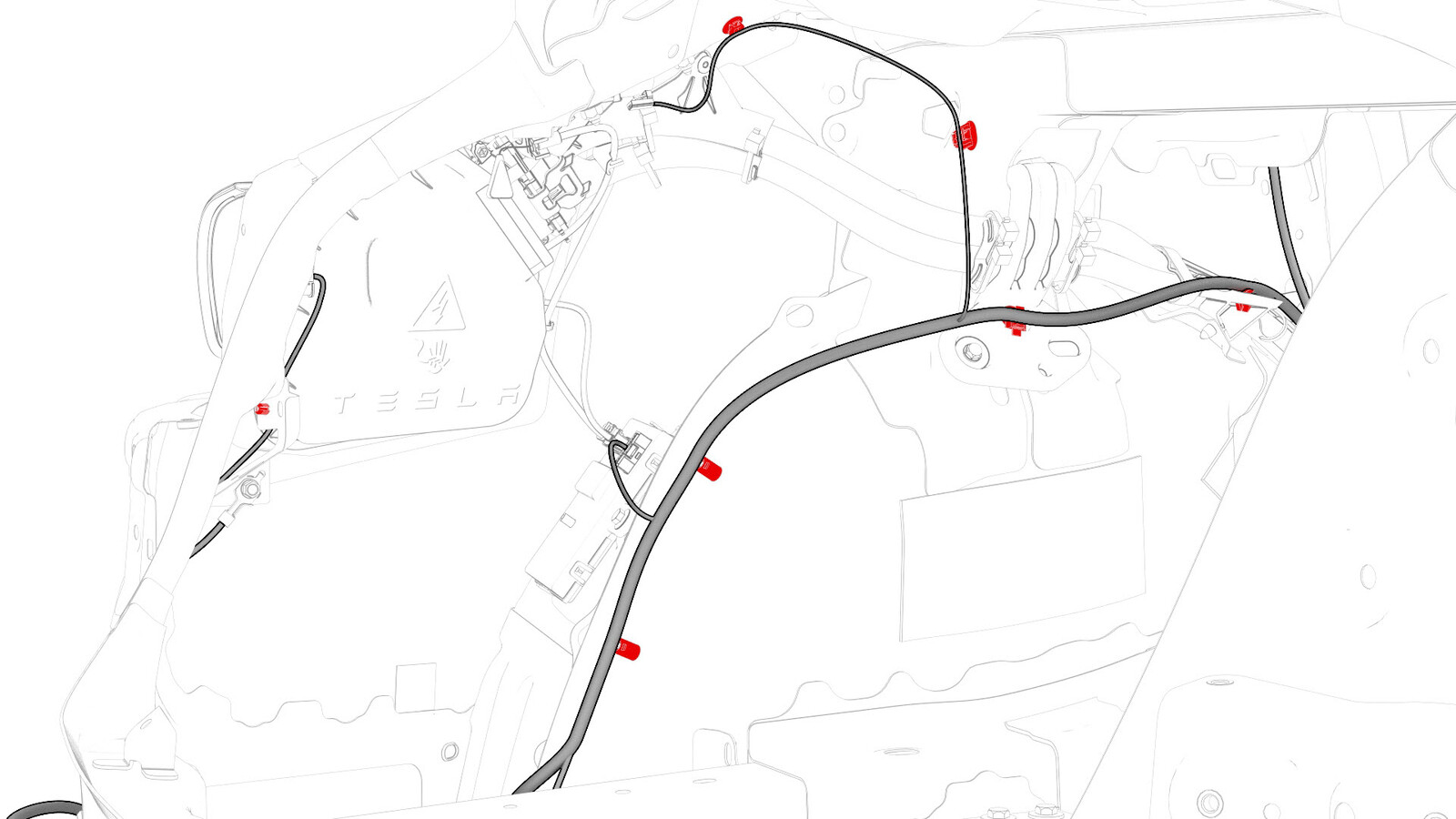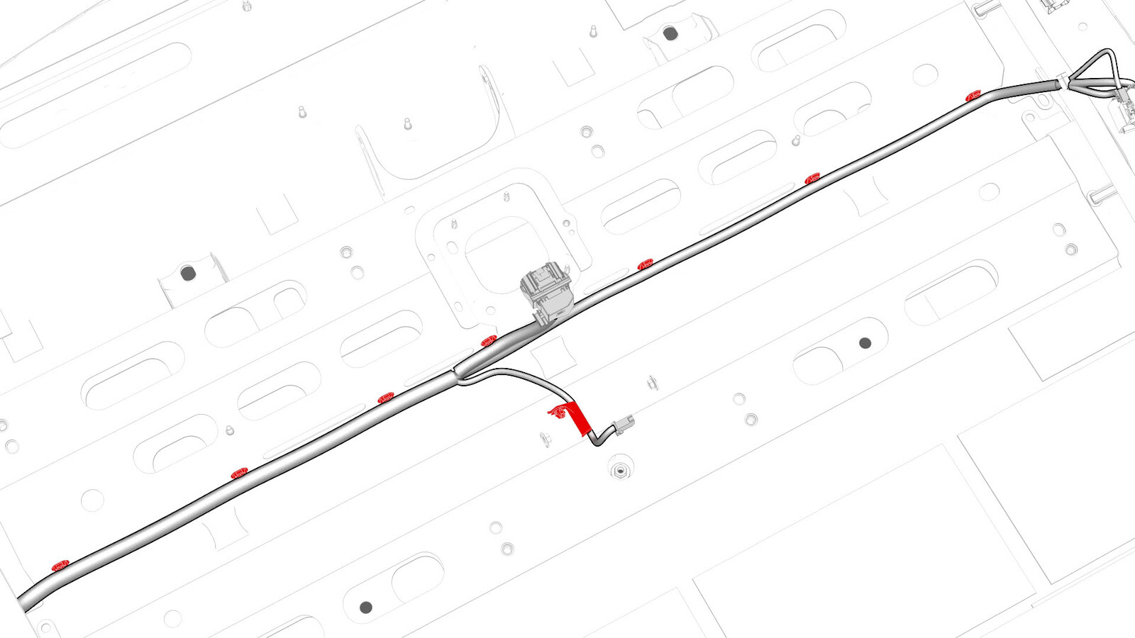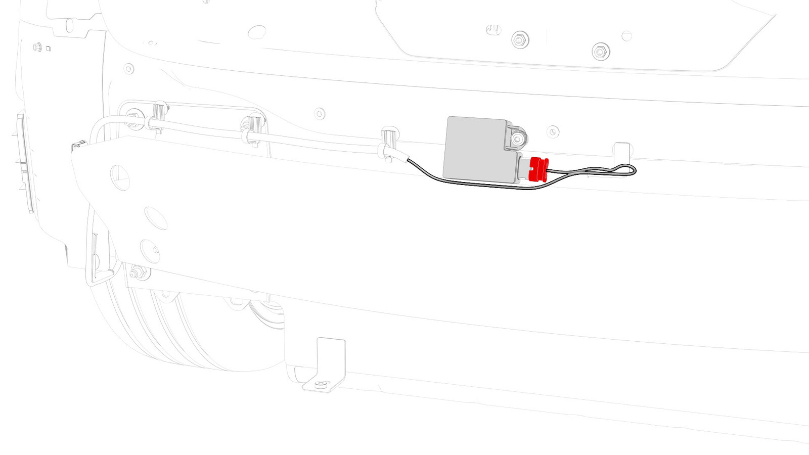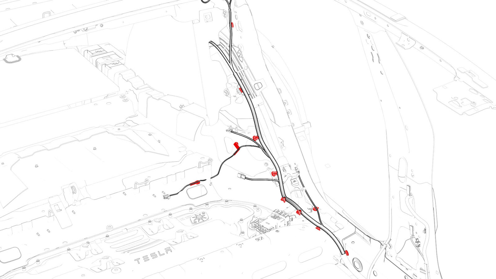 - Remove the clips that attach the LH body harness to the body in the rear fascia and rear subframe areas.