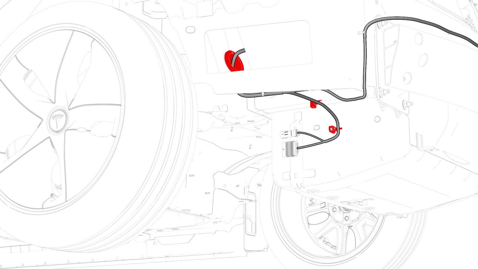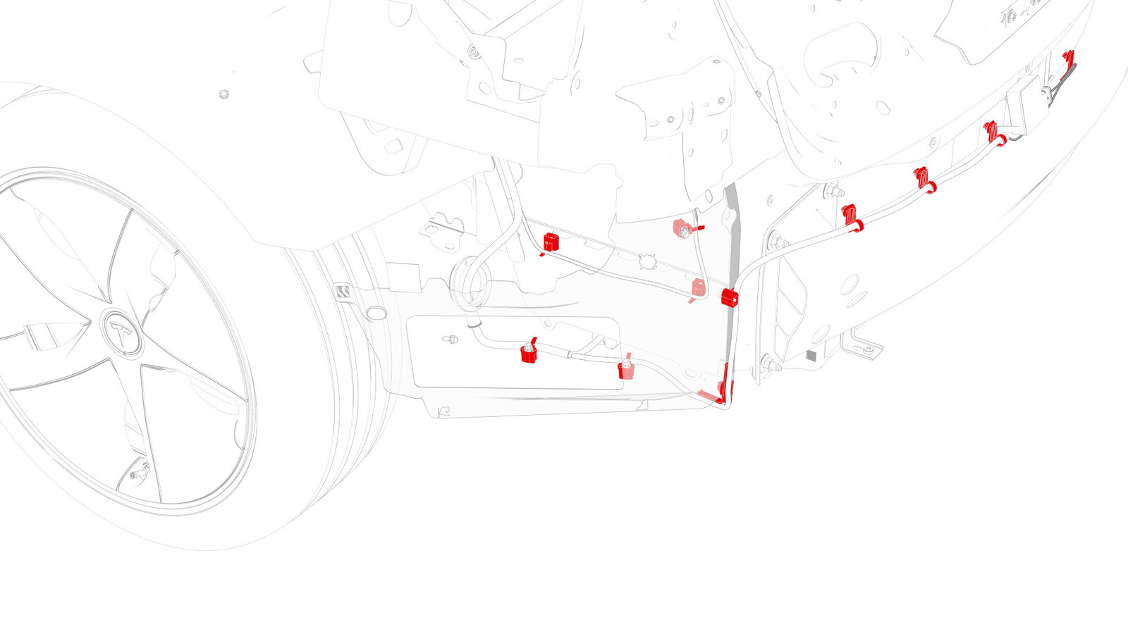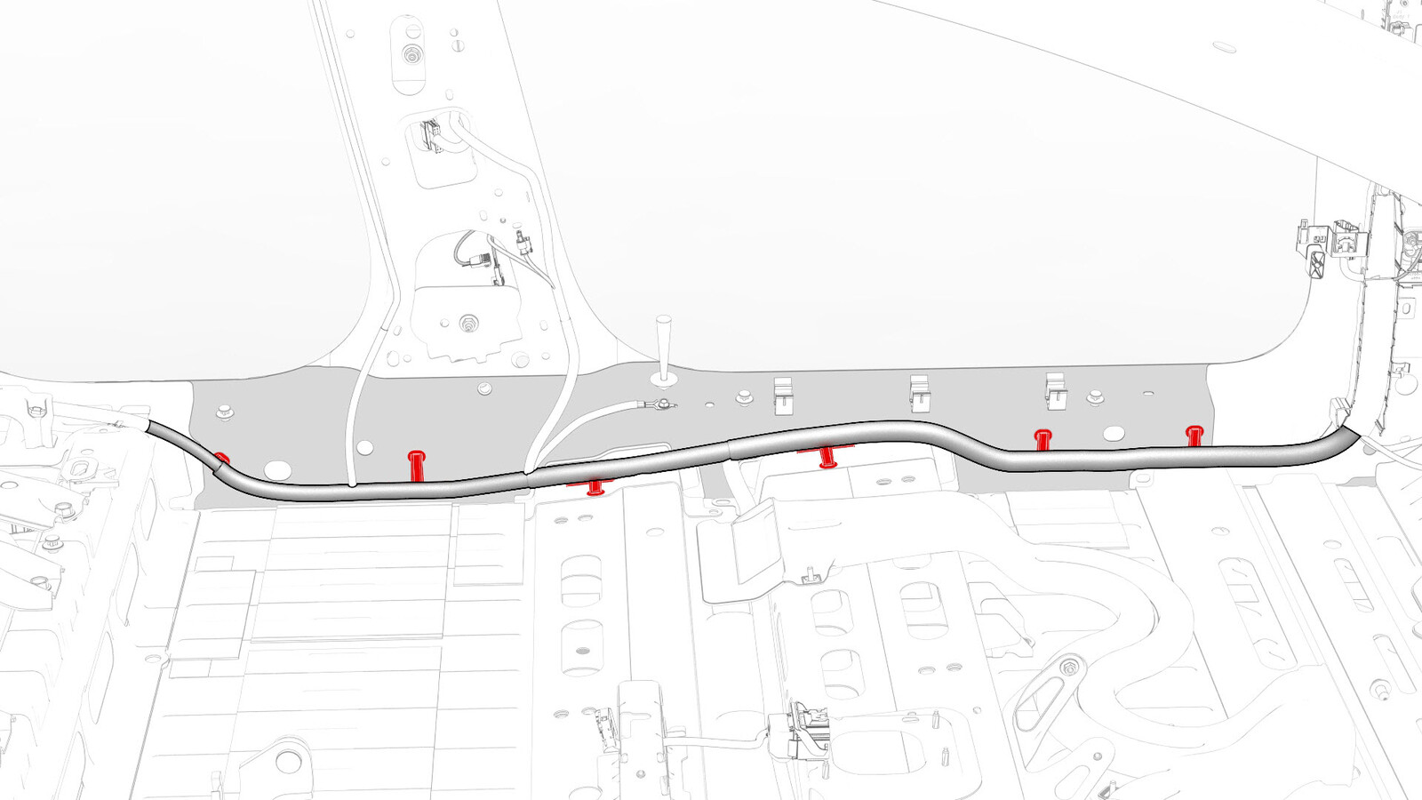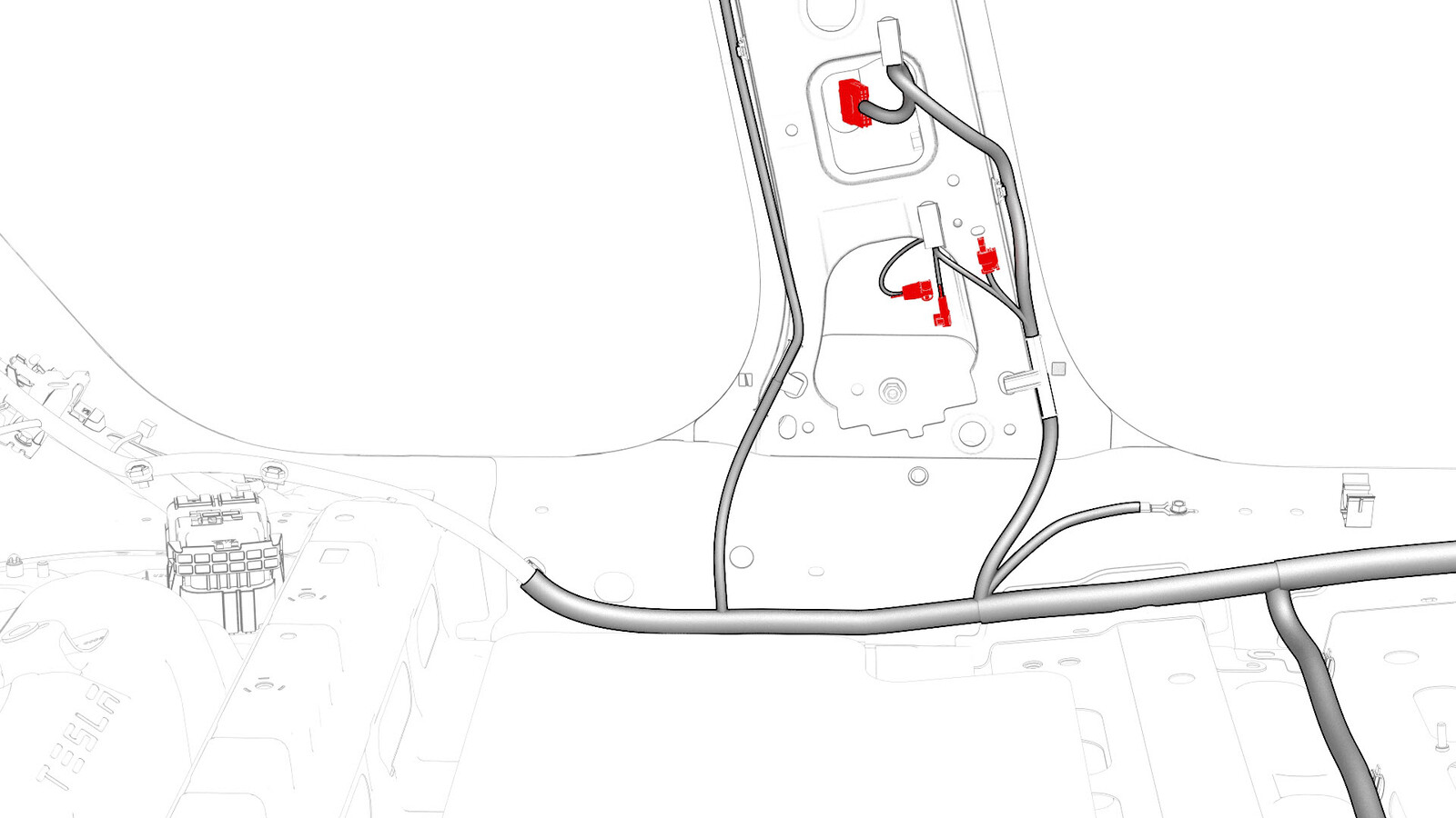 - Remove the clips that attach the LH body harness to the body in the rear fascia and rear subframe areas.