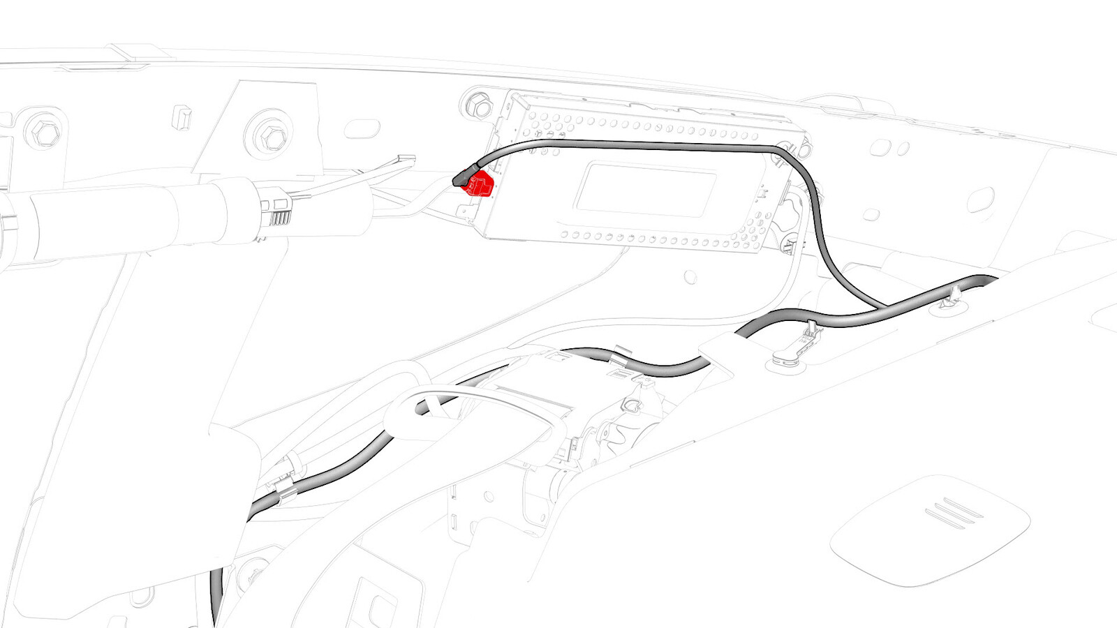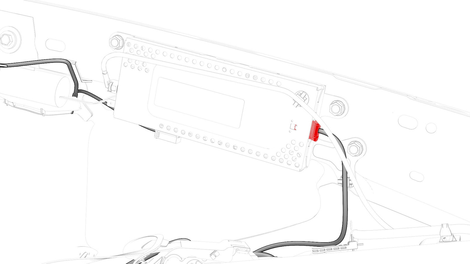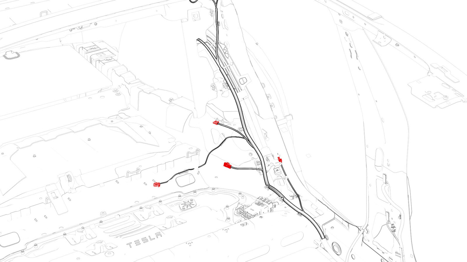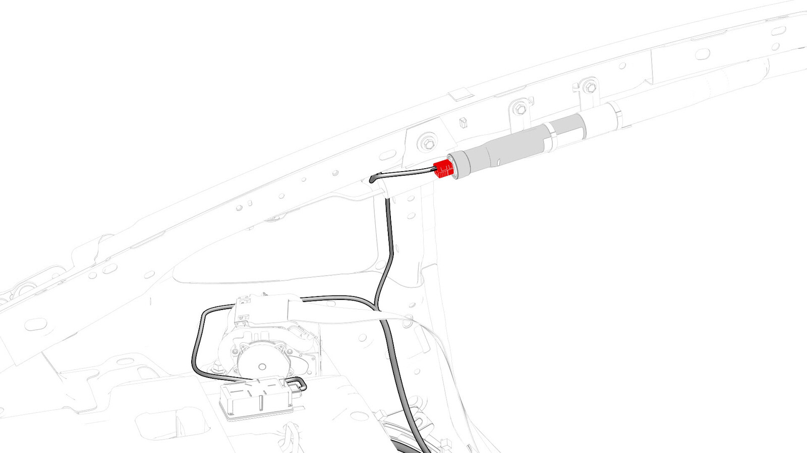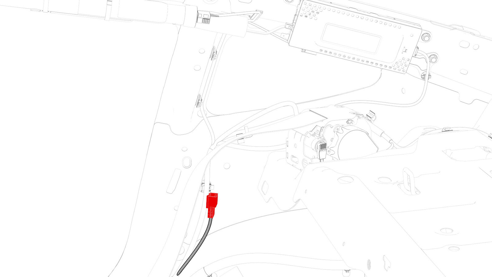 - Connect the electrical harness to the connectors in the lower C-pillar area.