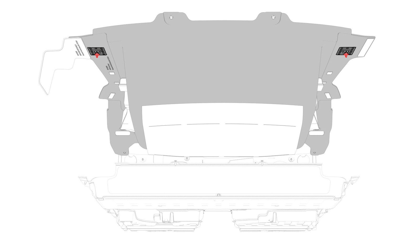 - Fasten the trunk carpet clips to the body studs under the 2nd row seat cushion.