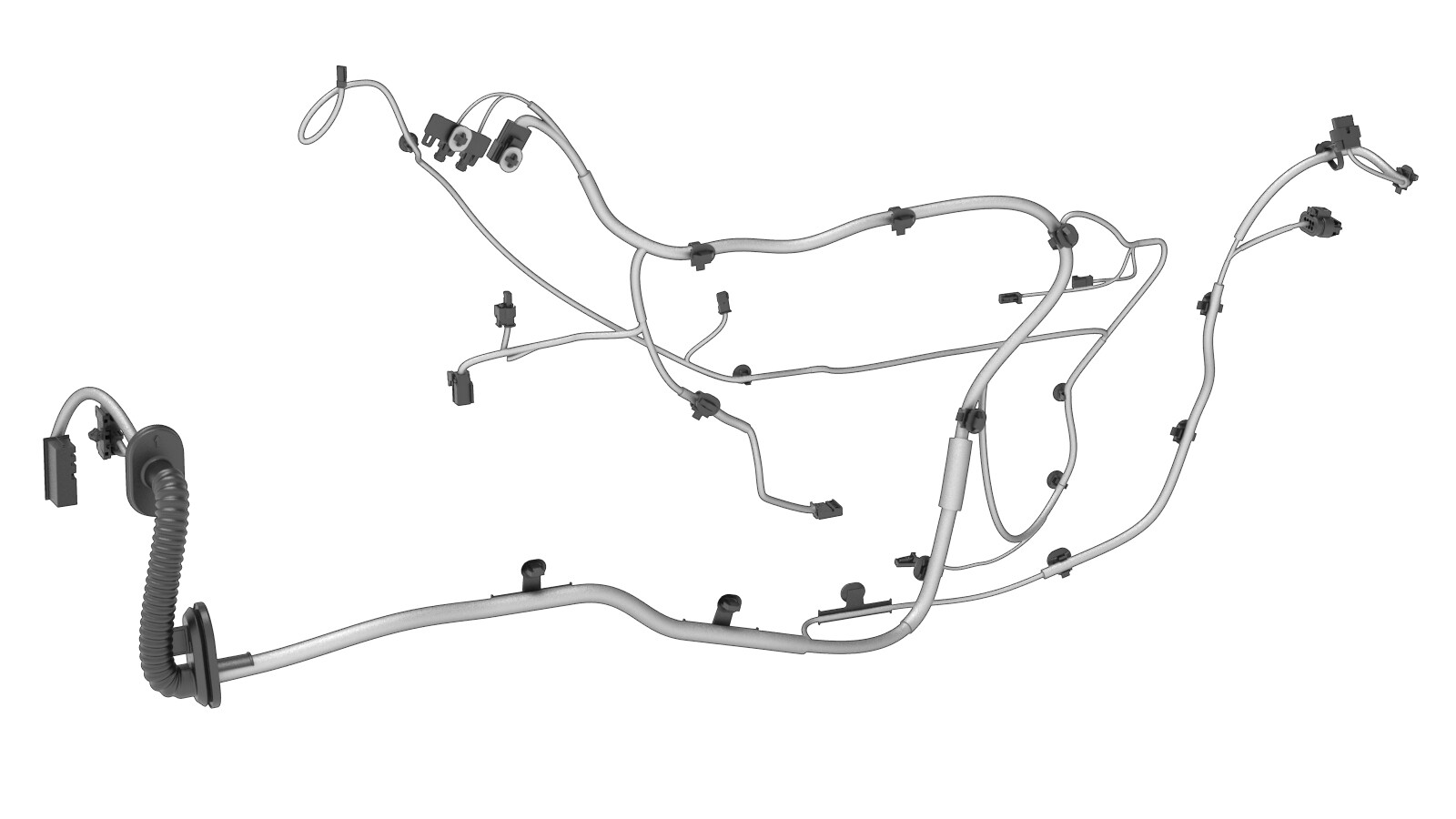 - Push the wiring harness connectors (x4) through the LH front door bulkhead, and then remove the harness from the door.