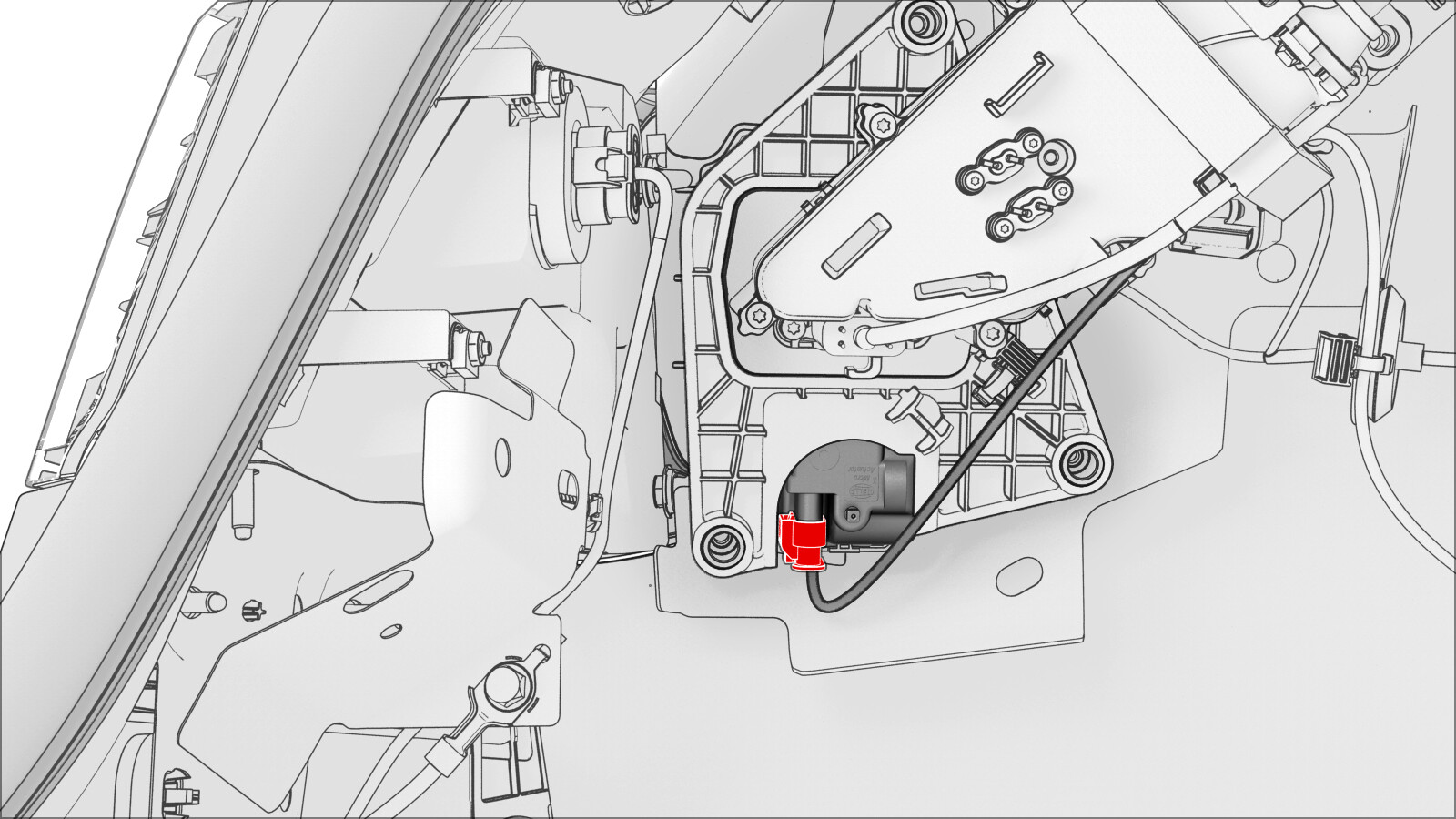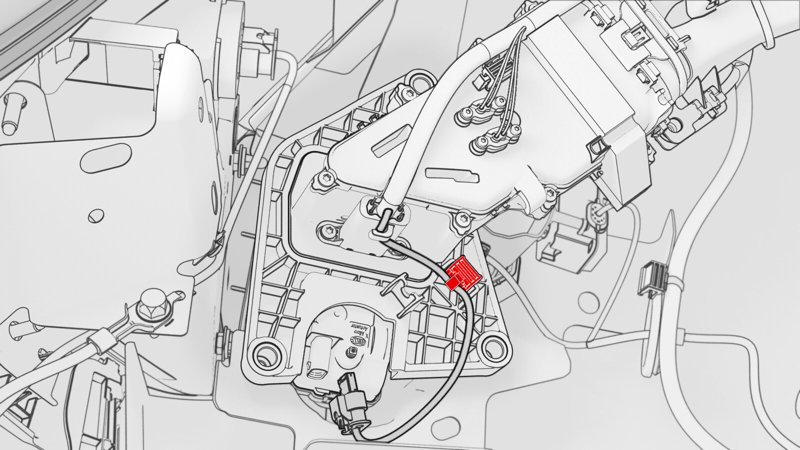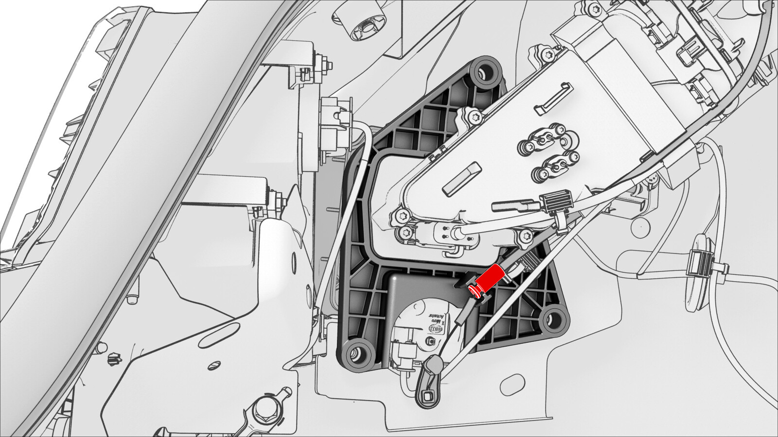 Release the clip that attaches the actuator harness to the charge port assembly, and then carefully cut the clip off of the harness.