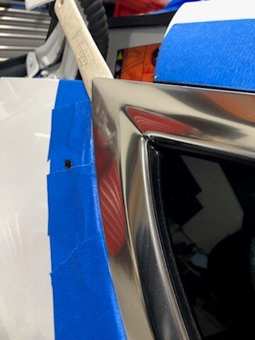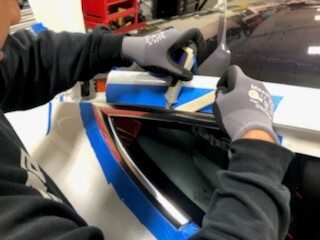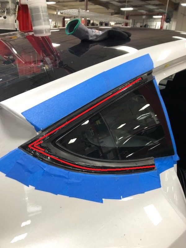 rear edge of the LH quarter brightwork from the LH rear quarter body glass, and then use