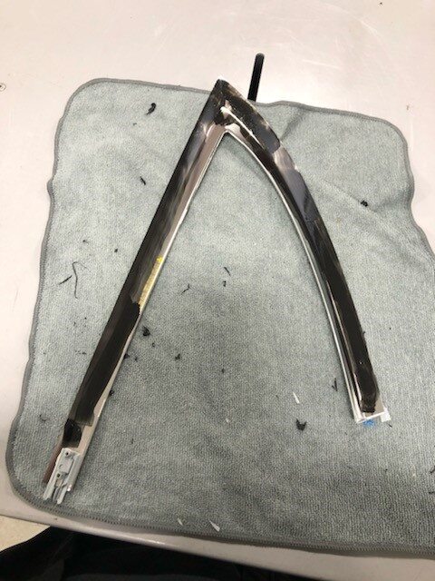 WarningAlways wear cut-resistant gloves when using cutting tools.CAUTIONUse caution with the clip that attaches the rear quarter brightwork to the LH upper body side brightwork.