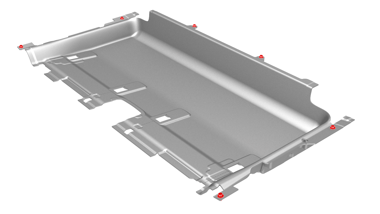 - Remove the driver and front passenger seats. See Seat Assembly - 1st Row - LH (Remove and Replace).