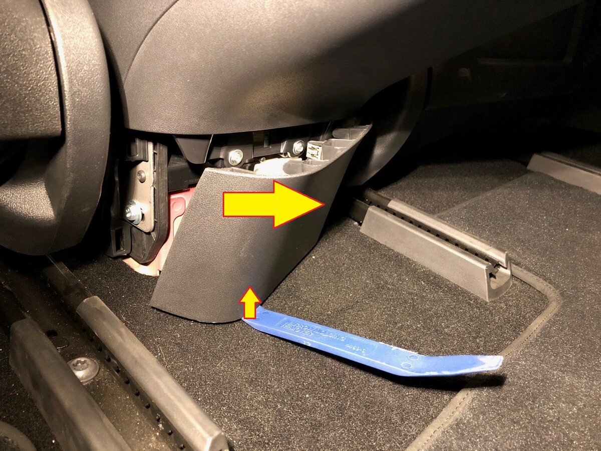 Remove RH console side panel carpet